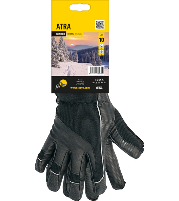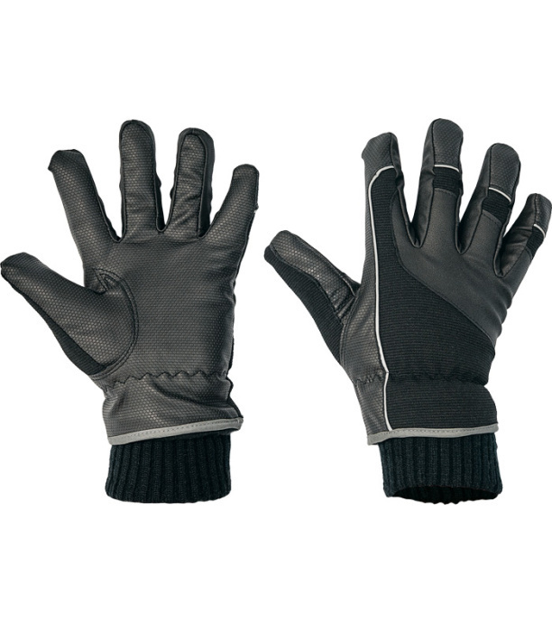 Opis: Ocieplone, wodoodporne rękawice zimowe. W części chwytnej mikrowłókna poliestrowo/bambusowe powlekane PU w kolorze czarnym. Część grzbietowa wykonana z czarnego elastycznego nylonu, wzmacniana imitującym skórę PU. W nadgarstku czarny, dziany ściągacz. Na koniuszkach 3 palców i w części chwytnej odblaskowy piping z PU. Od wewnątrz w całości wyłożone ociepliną Thinsualte - 40 g.