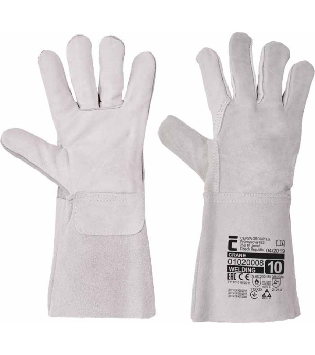 Opis: Rękawice skórzane z licowej skóry wołowej w części chwytnej dłoni, z dwoiny wołowej na grzbiecie, sztywny mankiet o szerokości 15 cm, bez podszewki. Certyfikat: prace spawalnicze - typ B