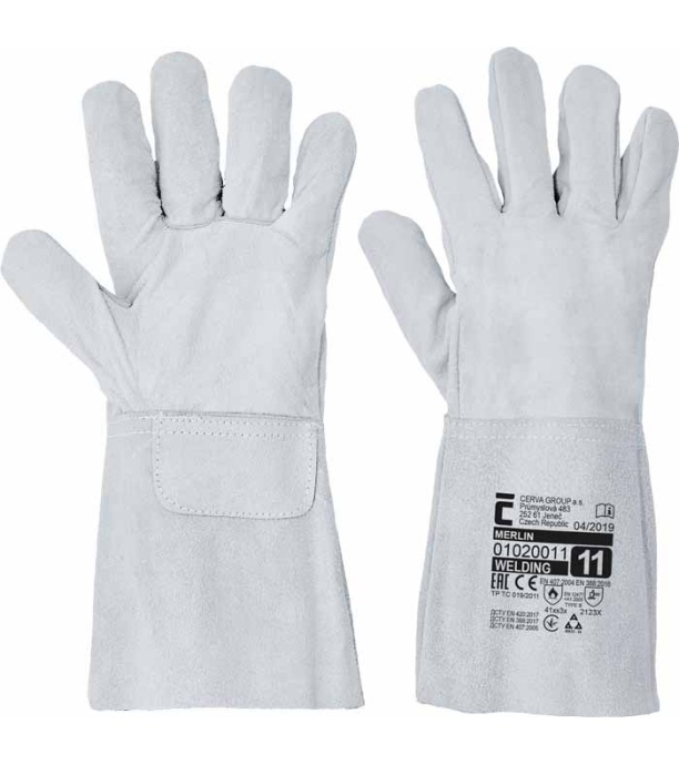 Opis: Rękawice skórzane z dwoiny wołowej, mankiet o szerokości 15 cm, bez podszewki. Certyfikat: prace spawalnicze - typ B