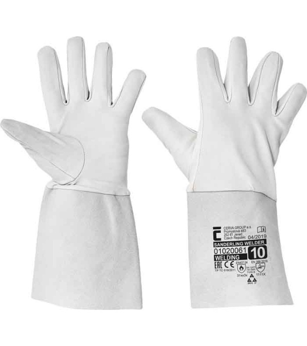 Całoskórzane rękawice wykonane z koziej skóry licowej, z szerokim mankietem 15 cm wykonanym ze skóry dwoinowej. Certyfikat prace spawalnicze typu: B.