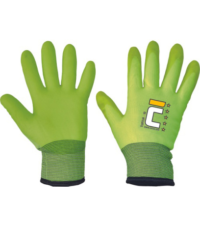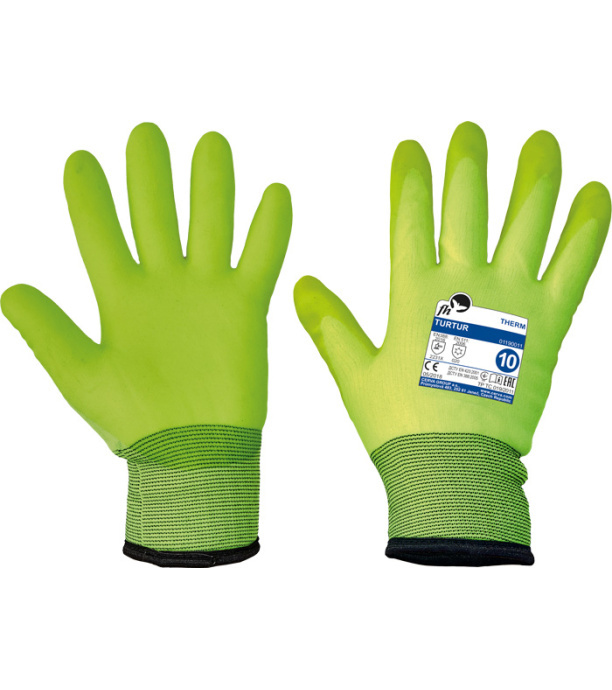 Opis: Rękawice wysokiej widoczności, odporne na działanie wilgoci, ocieplane bezszwowe wykonane z dzianiny nylonowej powleczonej warstwą PCV w cześci chwytnej dłoni i na palcach. Rękawice są grubo ocieplane, wykończone elastycznym ściagaczem. Spełnia wymagania OEKO-Tex®, zastosowanie technologii Sanitized® Normy: EN 388 (3231X) EN 511 (X2X) EN 420