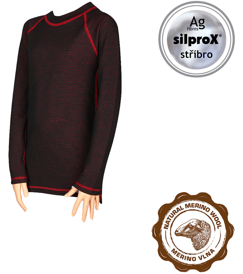 Koszulka dziecięca to dwuwarstwowa bielizna funkcjonalna, która składa się z zewnętrznej warstwy z wełny merino (CLIMAYARN) oraz wewnętrznej warstwy z polipropylenu silproX, który zawiera jony srebra. Takie połączenie zapewnia przewiewność i wysokie odprowadzanie potu. Wilgoć bardzo szybko przechodzi przez warstwę wewnętrzną, a w warstwie zewnętrznej dzięki właściwościom wełny merino jest wchłaniana i stopniowo odparowywana w zależności od warunków. Dzięki naturalnym właściwościom wełny i jonom srebra, które mają działanie antybakteryjne, znacznie ograniczane jest powstawanie bakterii i grzybów. Dzięki tym właściwościom bakterie w praniu są naturalnie niszczone i nie powstaje żaden zapach.