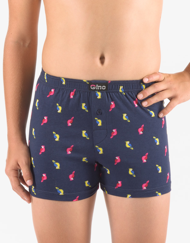 Luźne bokserki wykonane w 100% z bawełny to idealna propozycja dla każdego, kto lubi klasyczny wygodny krój i naturalne materiały. Bokserki mają zabawny wzór i naszywkę z logo Gino w talii. Dobrze dopasowany elastyczny pas i zapięcie na jeden guzik to oczywistość.