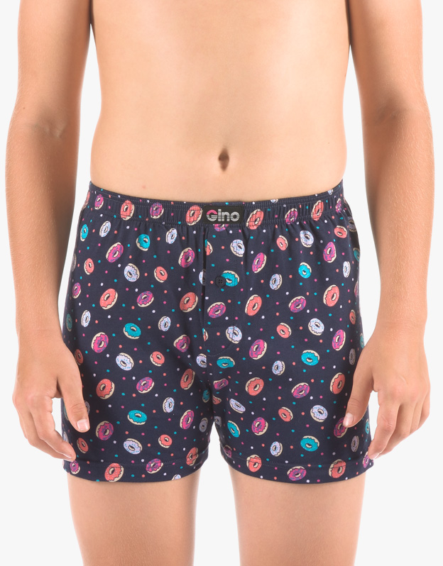 Luźne bokserki wykonane w 100% z bawełny to idealna propozycja dla każdego, kto lubi klasyczny wygodny krój i naturalne materiały. Bokserki mają zabawny wzór i naszywkę z logo Gino w talii. Dobrze dopasowany elastyczny pas i zapięcie na jeden guzik to oczywistość.