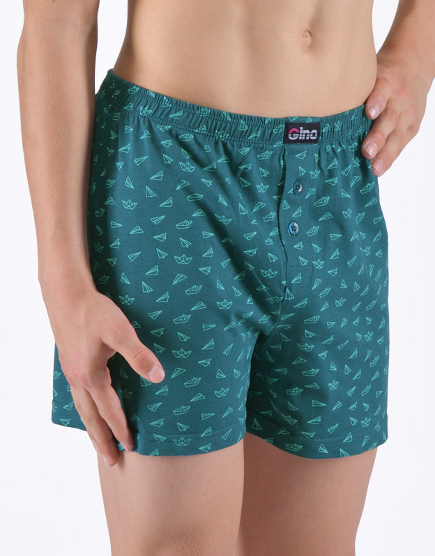 Te bokserki wykonane w 100% z bawełny to idealny wybór dla każdego, kto ceni klasyczny, wygodny krój bokserek i naturalne materiały. Mają nadruk origami i naszywkę z logo Gino w pasie. Mają również dobrze dopasowaną gumkę w pasie i zapięcie na dwa guziki.