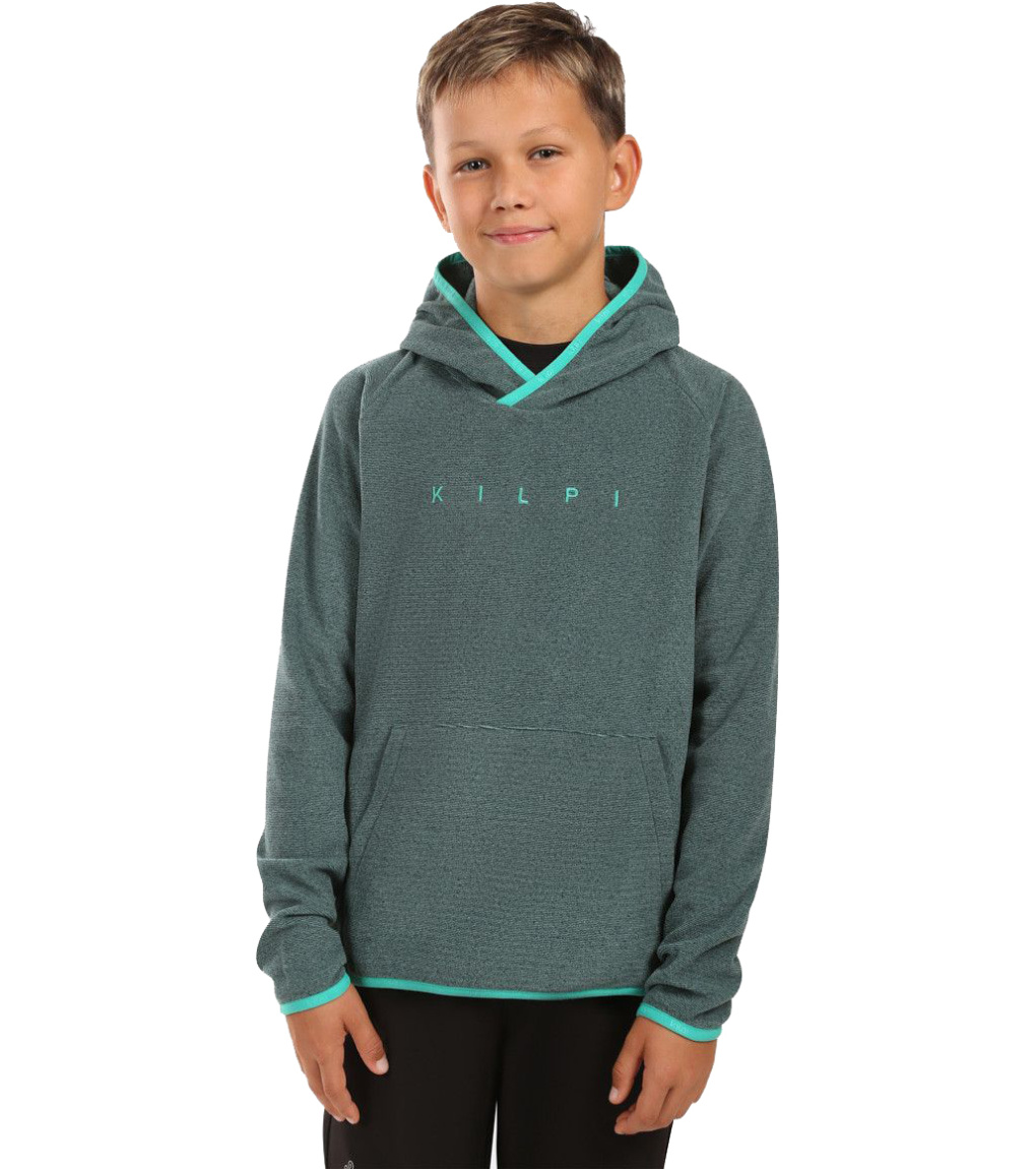Wielofunkcyjna bluza polarowa dla chłopców Kilpi FLOND-JB, idealna do wypoczynku i uprawiania sportu. Wykonana z lekkiego, ciepłego materiału OPTI-HEAT, który pomaga utrzymać ciepło ciała poprzez transport wilgoci z warstw wierzchnich na powierzchnię materiału i zapobiega przenikaniu zimna z zewnątrz. Efekt lekkiego melanżu uzyskano dzięki połączeniu dwóch odcieni kolorów. Kaptur, brzegi rękawów i dół bluzy podszyte są kontrastowym materiałem. Na piersi znajduje się duże, haftowane logo. Dzieci z pewnością docenią praktyczną kieszeń kangurkową. Bluza Kilpi FLOND-JB dla małych i dużych poszukiwaczy przygód dostępna jest w dwóch kolorach.