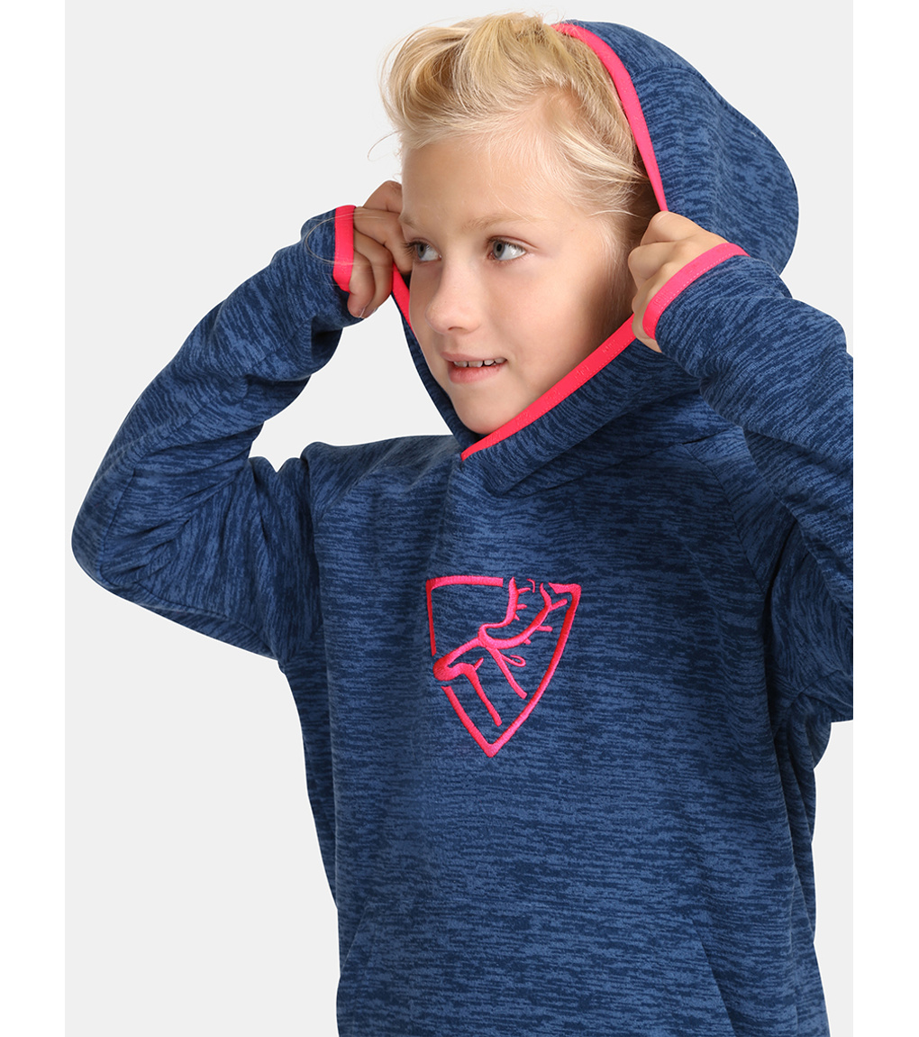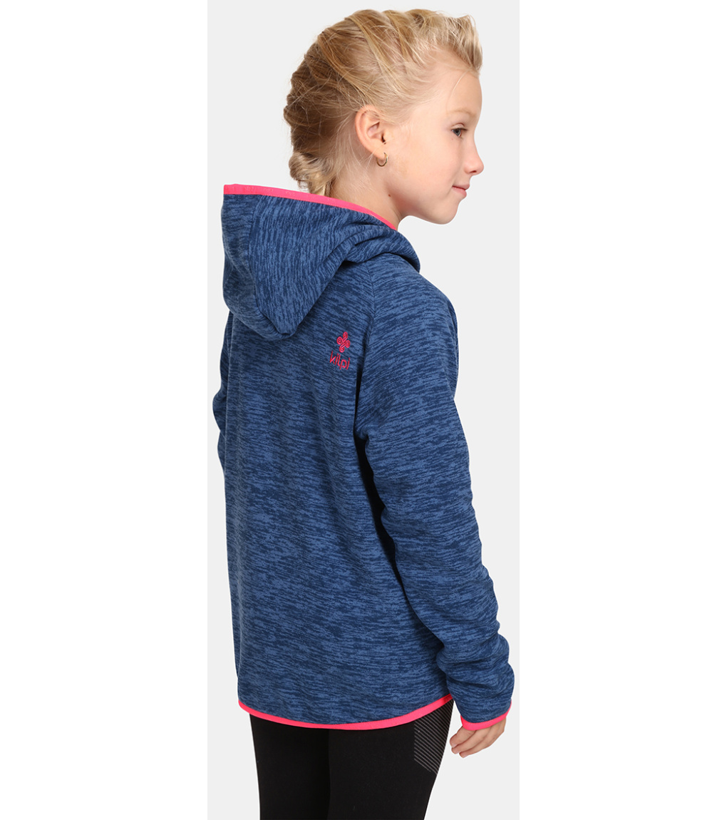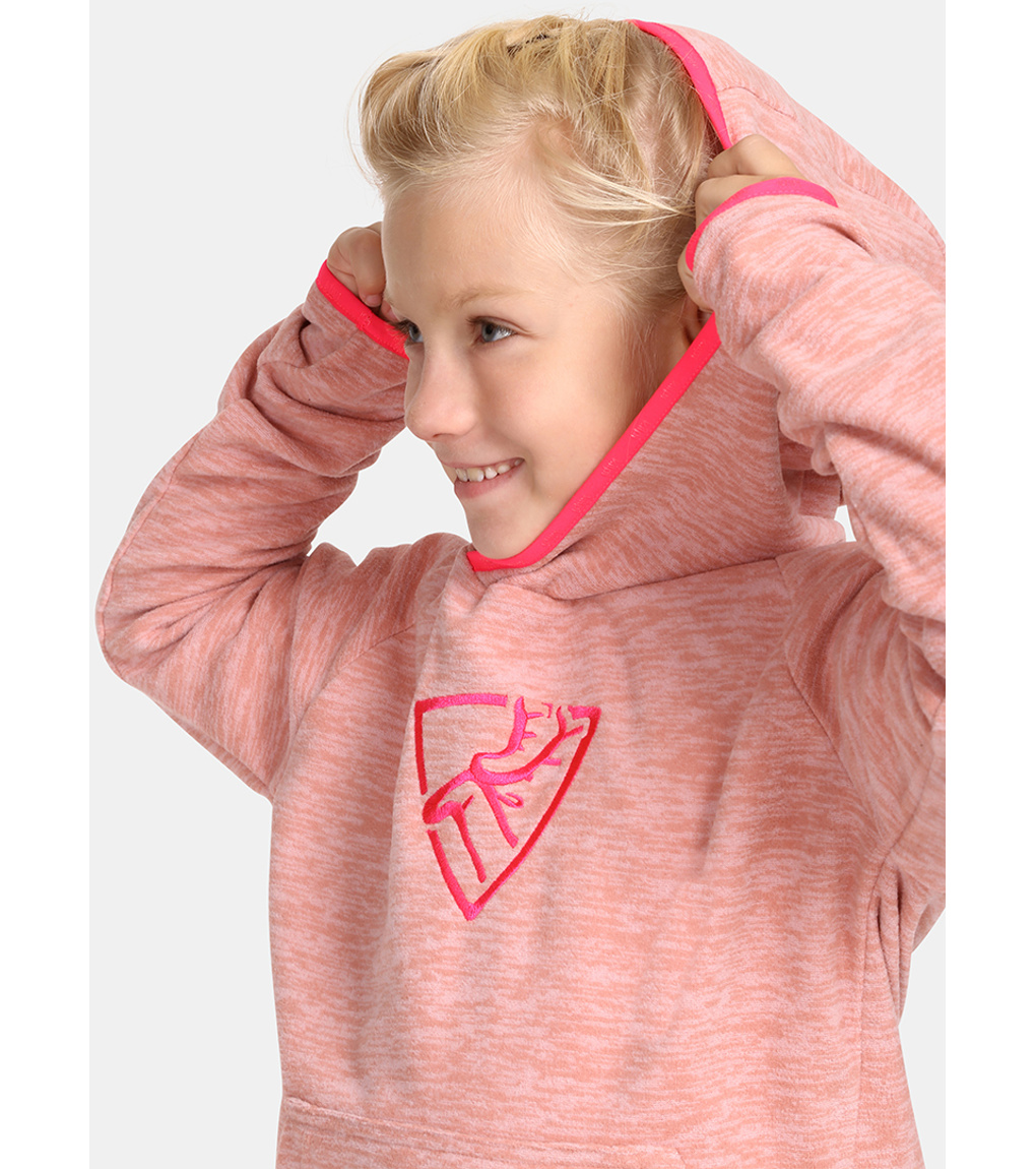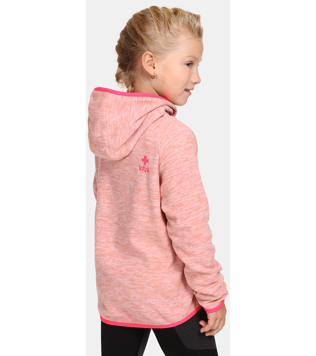 Kilpi FLOND-JG to dziewczęca bluza polarowa z kapturem, wykonana z lekkiego, ciepłego materiału OPTI-HEAT, który pomaga utrzymać ciepłotę ciała poprzez transport wilgoci z pierwszych warstw na powierzchnię materiału oraz zapobiega przenikaniu chłodu. Efekt lekkiego melanżu uzyskuje się łącząc dwa odcienie koloru. Kaptur oraz brzegi rękawów i dół bluzy podszyte kontrastowym materiałem, na piersi duży haft z logo. Dzieci z pewnością docenią praktyczną kieszeń kangurkę z przodu.