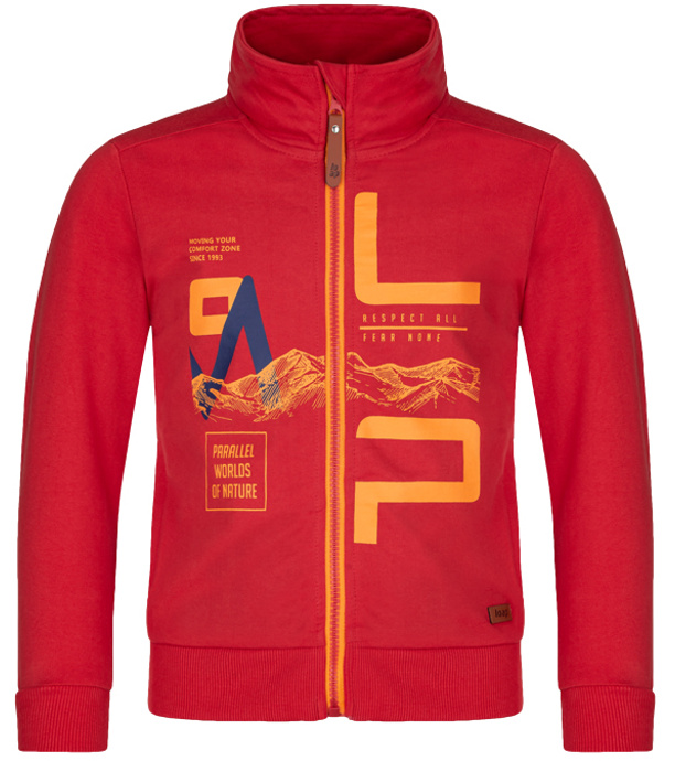 Chłopięca bluza Loap DORAN ze stójką będzie towarzyszyć małemu chłopcu we wszystkich przygodach, jakie niesie ze sobą każdy dzień w szkole, na placu zabaw, na wycieczce, a nawet w domu. Bluza ma klasyczny krój, materiał 100% bawełna zapewnia przyjemne noszenie. Dzięki wyższej gramaturze chłopcy będą jej używać przez cały rok. Łatwość ubierania zapewnia zamek błyskawiczny na całej długości, koniec zamka wyposażony jest w osłonę podbródka, co zapobiega nieprzyjemnemu przyszczypnięciu skóry. Zarówno dół jak i rękawy są elastyczne. Bluza zamiast kaptura ma praktyczną stójkę, dzięki czemu pobyt na zewnątrz nie kończy się przeziębieniem nawet w chłodniejsze dni. Całości dopełniają dwie zewnętrzne boczne kieszenie oraz wyrazisty kontrastowy napis z przodu. Prać w temperaturze 30°C z płynem do płukania tkanin.