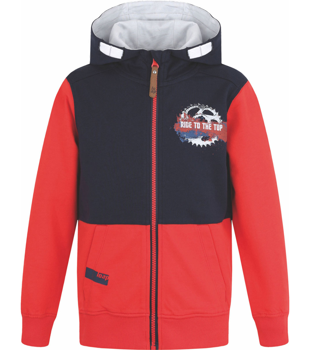 Rozpinana bluza chłopięca Loap DILI wykonana jest w wygodnym, klasycznym kroju. Kaptur ma ściągacz na płaskie paski, na rękawach i dolnej krawędzi znajduje się ściągacz. Zamek kostkowy ma praktyczną osłonę na górnym końcu, która chroni podbródek przed zimnem i ewentualnym urazem. Ta chłopięca bluza z dwiema bocznymi kieszeniami ma przyjemny w dotyku matowy nadruk na piersi. Nadaje się do całorocznego noszenia do szkoły, na wycieczki do natury i na czas wolny - do jeansów i spodni dresowych. Kostkowy zamek z osłoną podbródka. Elastyczne mankiety i dół. Nadruk jest przyjemny w dotyku. Dwie boczne kieszenie.