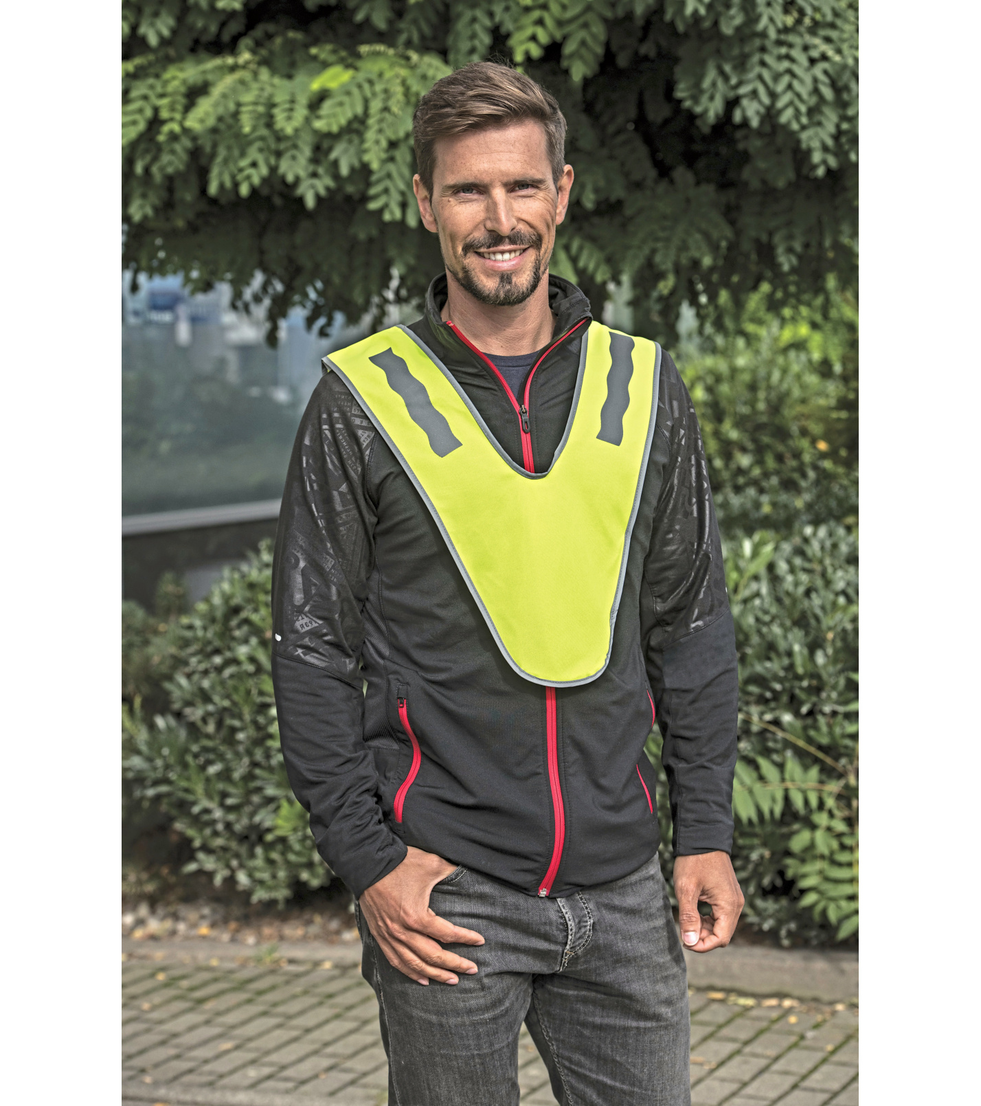 Elementy odblaskowe poprawiające widoczność sportowca dla bezpiecznego treningu nawet w złych warunkach oświetleniowych.
