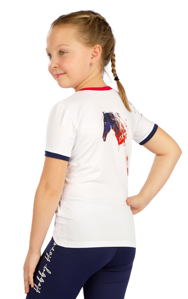Wygodny krój z dłuższym tyłem i okrągłym dekoltem. Kolorowy nadruk konia w reprezentacyjnych kolorach. Napis Hobby Horse z trójkolorowymi kryształkami. Wysokiej jakości materiał funkcjonalny gwarantuje wysoki komfort podczas całodziennego noszenia. Materiał jest bardzo lekki, oddychający, elastyczny i szybkoschnący. Nadaje się do aktywnego uprawiania sportu.