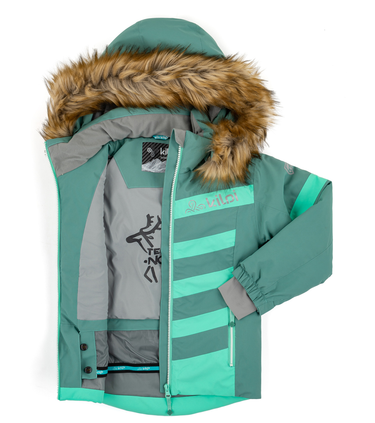 Kilpi MASSIMA-JG to dziewczęca kurtka narciarska z najwyższej półki naszych dziecięcych kurtek narciarskich w efektownym trójkolorowym stylu, który przyciągnie najmłodszych i starszych narciarzy. Wytrzymały materiał membranowy SIBERIUM 10000 2L STRETCH z klejonymi szwami jest wystarczająco wodoodporny, oddychający, a w połączeniu z elastyczną podszewką zapewnia swobodę ruchów. Ciepłe wypełnienie syntetyczne, wewnętrzne mankiety rękawów i pas przeciwśnieżny zapewniają poczucie komfortu. Kurtka ma dwie główne kieszenie, kieszeń na rękawie na karnet narciarski oraz odpinany kaptur z efektownym syntetycznym futerkiem. Obszycia rękawów wykończone są zapięciami na rzepy, dzięki czemu można je łatwo założyć na rękawiczki. Atutem kurtki MASSIMA-JG są elementy odblaskowe i praktyczna metka z imieniem po wewnętrznej stronie.