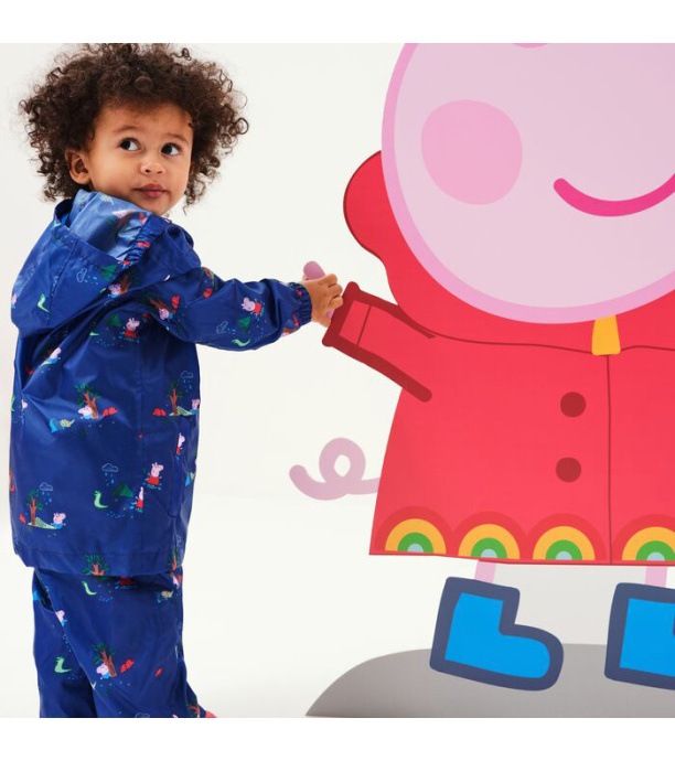 Kurtka dziecięca Peppa Pack jest wodoodporna i oddychająca, ma składaną konstrukcję i zapewnia przydatną ochronę w mokrych warunkach. Kurtka Peppa Pig wyposażona jest w technologię Isolite 5000, dzięki czemu z łatwością chroni przed deszczem i zachlapaniem. Jest także oddychająca. Kurtka ma zabawny nadruk, który z pewnością rozjaśni deszczowe dni.
