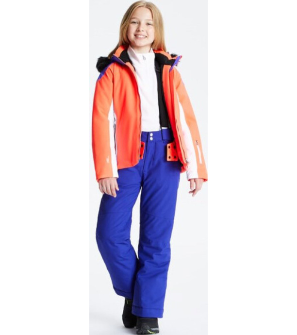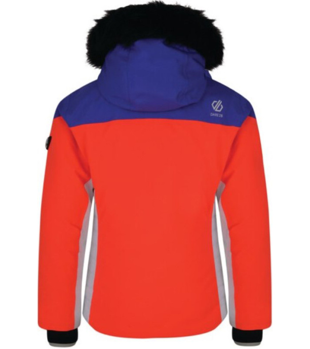 Dziecięca kurtka zimowa Dare2b VAST jest wykonana z hydrofobowego, oddychającego materiału ARED V02 Strech 20000. Kurtka jest w całości zapinana na zamek błyskawiczny z wysokim kołnierzem śnieżnym, zamek błyskawiczny przy szyi ma osłonę podbródka. Kaptur z futerkiem jest odpinany. Kurtka oferuje również pas śnieżny z silikonowym wykończeniem, regulację rękawów na rzep, regulację dolnego brzegu na zamek błyskawiczny. Dwie główne kieszenie zapinane na zamek błyskawiczny, kieszeń na karnet narciarski na lewym przedramieniu, dwie wewnętrzne kieszenie z siatki na okulary. Z tyłu znajduje się podszewka poliestrowa z antypoślizgowym panelem tylnym. Klejone szwy zapobiegają przedostawaniu się wilgoci z zewnątrz do materiału. Kurtka oferuje izolację poliestrową o małej objętości, która ma doskonałe właściwości termiczne i jest łatwa w utrzymaniu. Wewnętrzne wypełnienie to 250 g poliestru High Loft.
