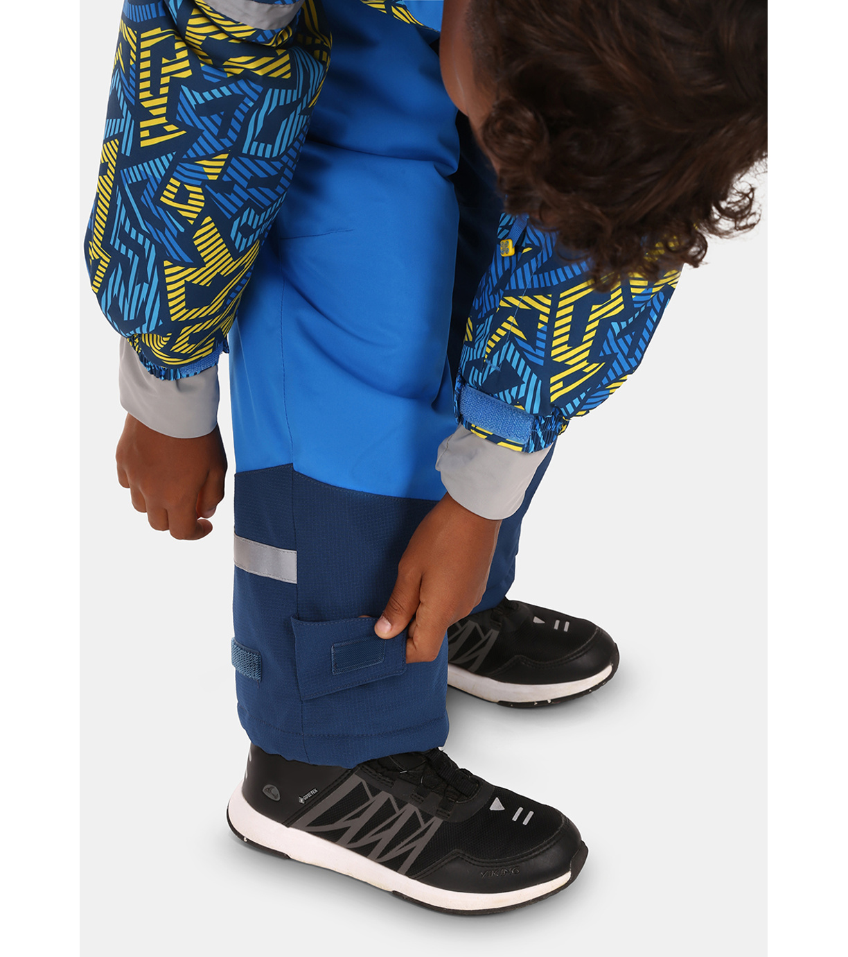 Kombinezon narciarski Kilpi PONTINO-J jest idealny dla małych narciarzy i chłopców, którzy lubią bawić się na śniegu. Kombinezon ma kolorowy nadruk na całej powierzchni. Rodzice docenią wysokiej jakości materiał membranowy SIBERIUM o słupie wody 10 000 mm i podklejanych szwach, dzięki czemu Twojemu dziecku będzie ciepło, sucho i wygodnie. Na rękawie znajduje się kieszeń na karnet narciarski oraz liczne odblaskowe nadruki, które są dobrze widoczne w ciemności. Obszycia rękawów zapinane na gumkę i rzep mają wewnętrzny elastyczny mankiet. Nogawki z wewnętrznym mankietem przeciwśniegowym wzmocnione są tkaniną zapobiegającą uszkodzeniom, a dodatkowo mają możliwość zwężenia obwodu za pomocą rzepu lub skrócenia długości. Dzięki temu wydłużysz czas wyrastania dziecka z kombinezonu. Kombinezon jest wyprofilowany w talii i na kolanach, dzięki czemu idealnie leży, a dzieci mogą beztrosko się bawić. Obszerny kaptur jest odpinany i wystarczająco ocieplony. Wewnątrz umieszczono praktyczną plakietkę z imieniem.
