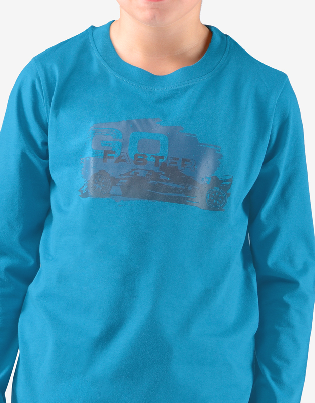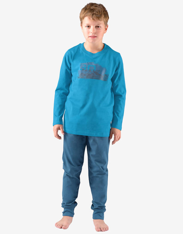 Podstawą wysokiej jakości snu jest Twój komfort, w czym pomaga również wygodna bielizna nocna. Chłopięca piżama z długim rękawem ma nadruk na piersi, który zachwyci nie tylko każdego małego wielbiciela Formuły i szybkich samochodów. Długie, gładkie spodnie są wykończone ściągaczami i można je ściągać w pasie dzięki sznurkowi. Dzianina bawełniana to idealny wybór materiału na bieliznę nocną.