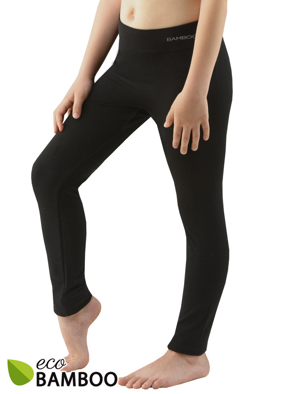 Legginsy długie, bezszwowa bielizna dziewczęca i chłopięca. Legginsy są jednokolorowe. W zakładce dzianinowe logo w kolorze szarym. Ten krój legginsów jest odpowiedni zarówno dla dziewczynek, jak i dla chłopców. Legginsy są bardzo uniwersalne ze względu na swój krój, użyty materiał oraz czarny kolor. Można je nosić zarówno podczas uprawiania sportu, jak i zimą zamiast rajstop, a latem do dłuższych T-shirtów jako nowoczesna alternatywa dla legginsów.