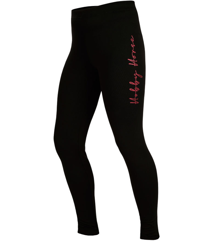 Funkcjonalne legginsy dziecięce. Wygodny elastyczny pas z gumką. Z boku ozdobny różowy, brokatowy nadruk. Materiał jest elastyczny, szybkoschnący i zapewnia maksymalny komfort noszenia. Legginsy do uprawiania sportu i rekreacji.