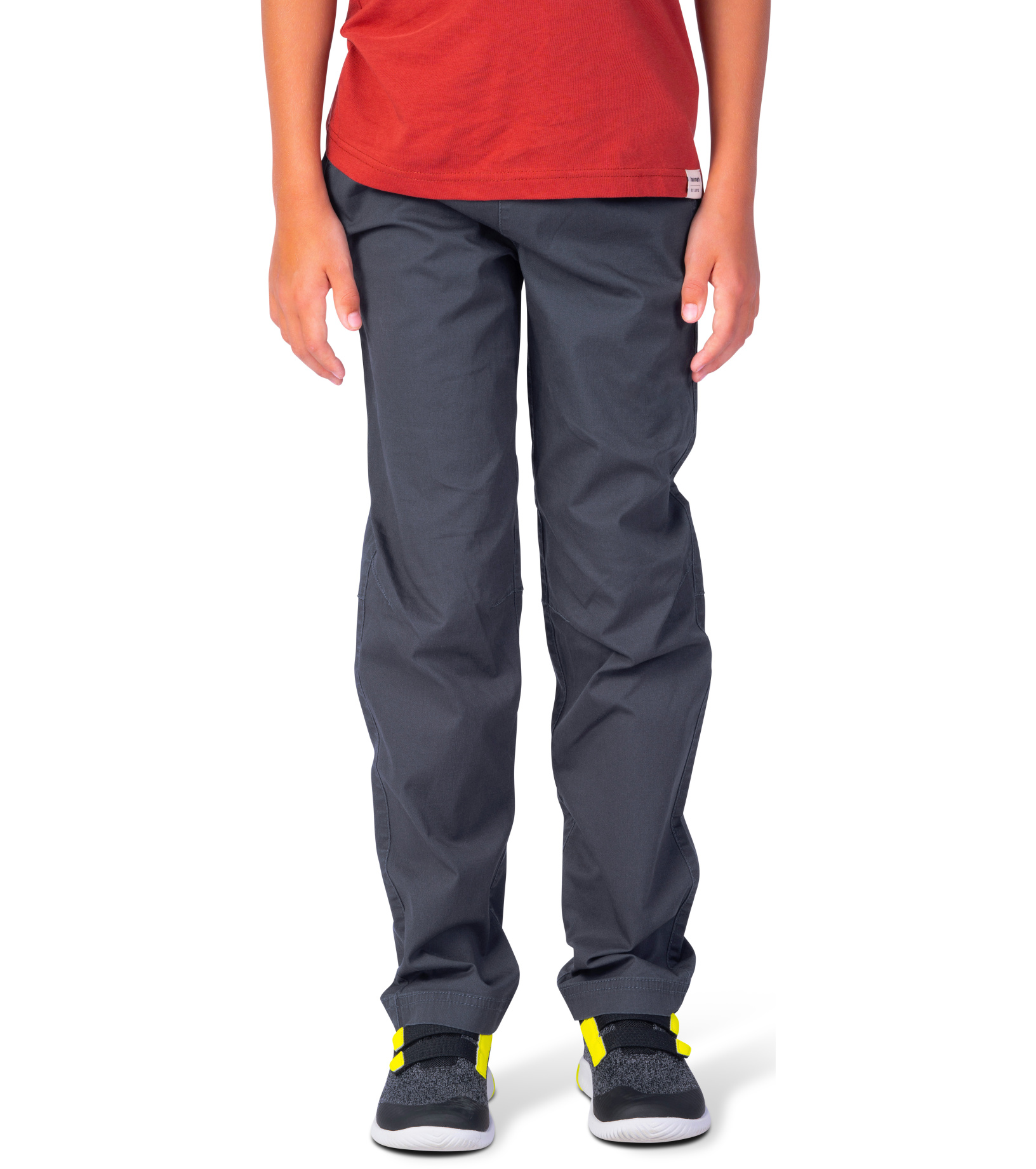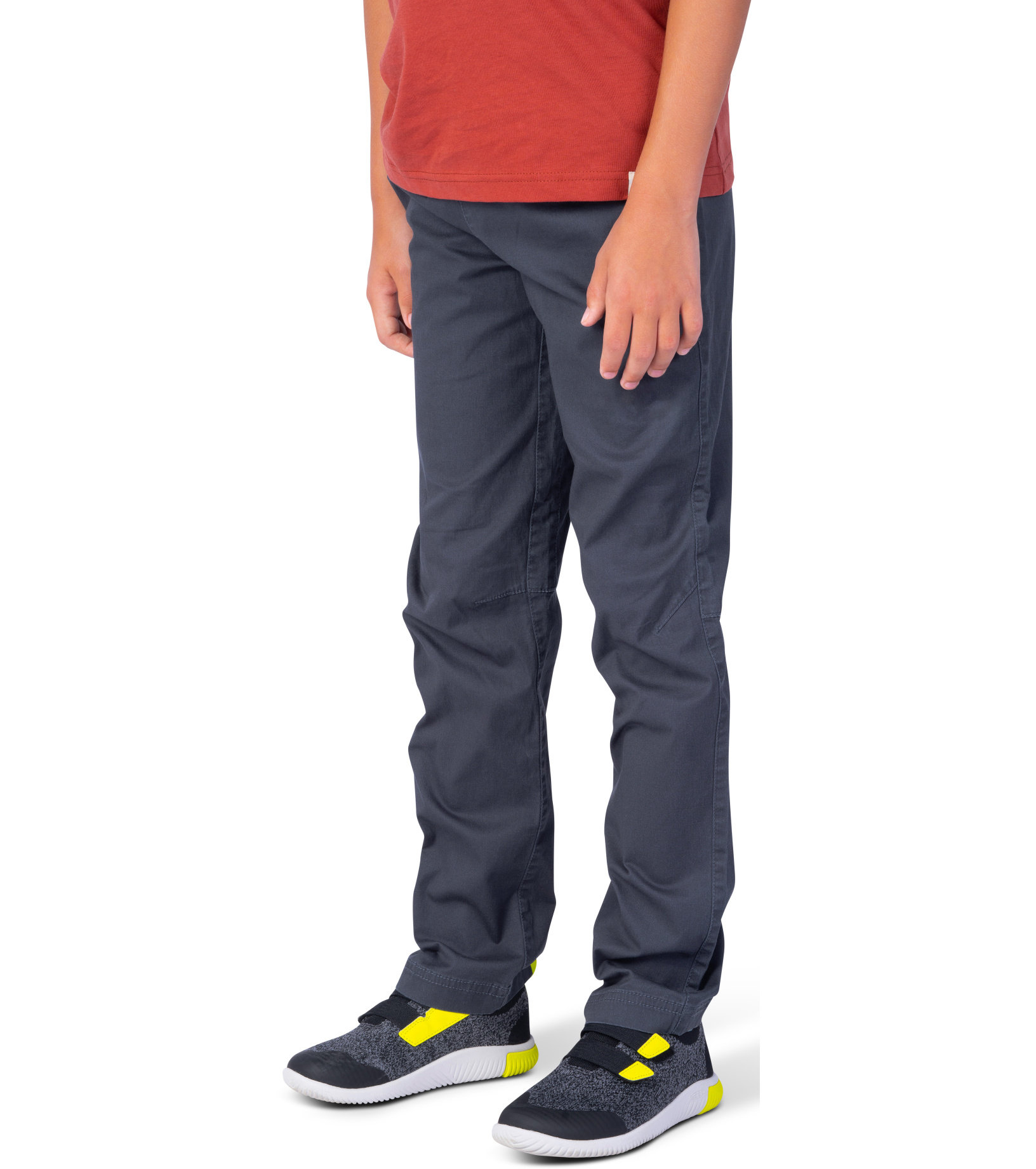 Bawełniane spodnie chłopięce o technicznym kroju i anatomicznie profilowanych kolanach, które zapewniają swobodę ruchów i elastyczność podczas każdej aktywności. Wykonane z wysokiej jakości bawełny, która jest oddychająca i przyjemna w dotyku, z dodatkiem elastanu, który nadaje spodniom elastyczność i wygodę. Elastyczny pas ze sznurkiem do regulacji pozwala na idealne dopasowanie i wygodę noszenia. Spodnie wyposażone są w dwie kieszenie z przodu i z tyłu, dzięki czemu są praktyczne w codziennym użytkowaniu.