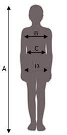 | B | Obwód klatki piersiowej | 65 | 66 | 68 | 72 | 76 | 80 | |