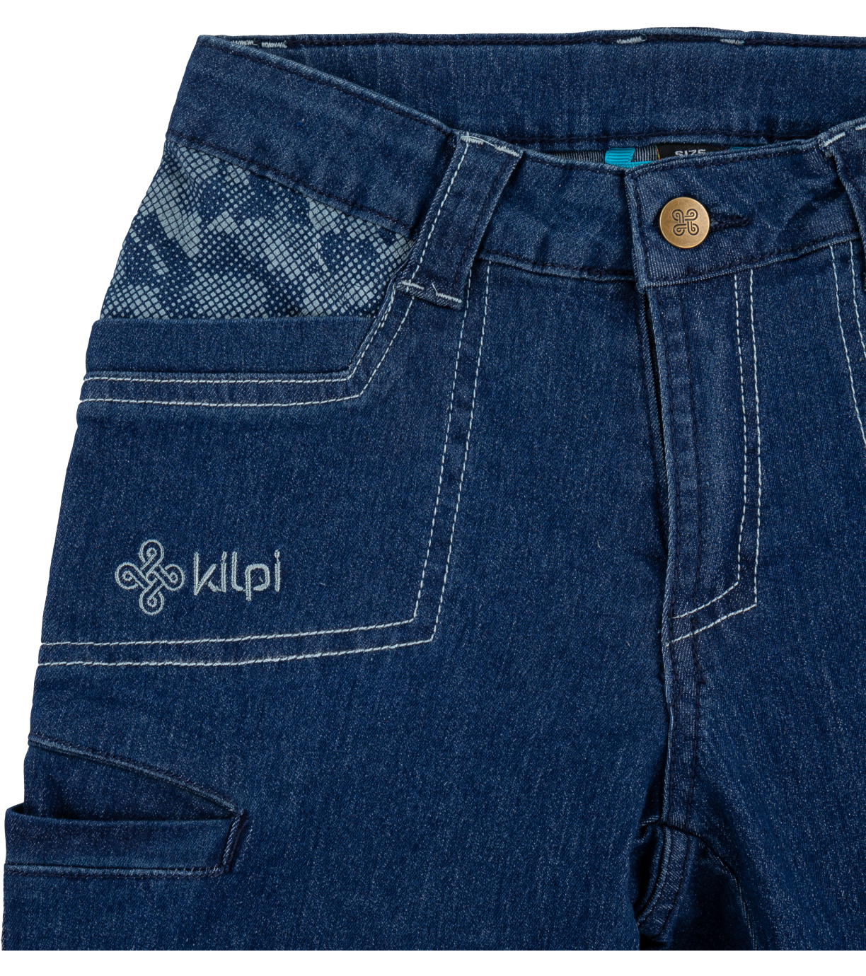 Spodnie dziecięce Kilpi DANNY-J są idealne do codziennego wypoczynku lub aktywności na świeżym powietrzu. Przyjemnie lekki, elastyczny materiał z domieszką bawełny jest bardzo wygodny. Posiadają ukryty system guzików w pasie do regulacji obwodu oraz szlufki. Spodnie posiadają cztery kieszenie zapinane na zamek, a dół wykończony elastyczną lamówką. Nieśmiertelny dżins z kontrastowymi podwójnymi szwami i nadrukiem jest odpowiedni zarówno dla chłopców, jak i dziewczynek.
