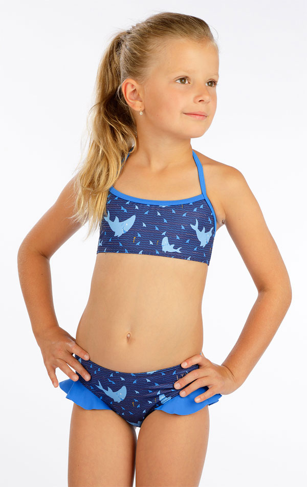 Dziewczęcy top kąpielowy. Regulowane ramiączko zapinane z tyłu szyi.