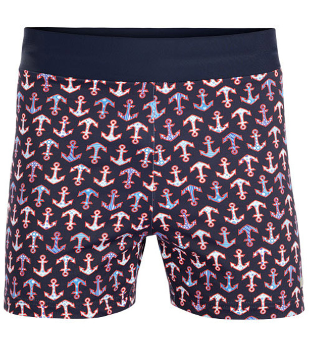 Chłopięce bokserki kąpielowe. Szeroka, elastyczna talia ze sznurkiem ściągającym w środku.