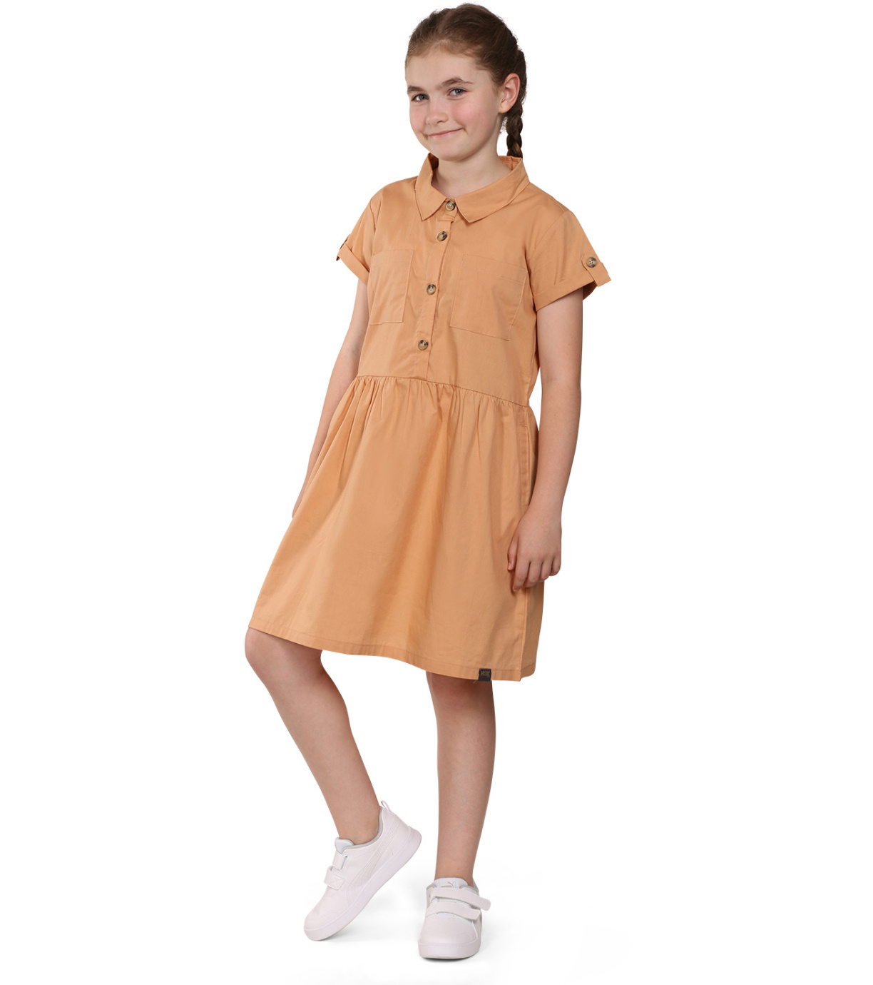 W szafie dziewczynki nie może zabraknąć letniej sukienki ERFO czeskiej marki NAX. Pół-dopasowany krój o długości za kolana jest popularny i bardzo praktyczny na sezon letni, w mieście i na łonie natury. Bawełniany materiał jest bardzo miękki, elastyczny i podatny. Zapięcie na guziki, nowoczesna naszywka i 4 kieszenie, to wszystko pięknie ze sobą współgra.