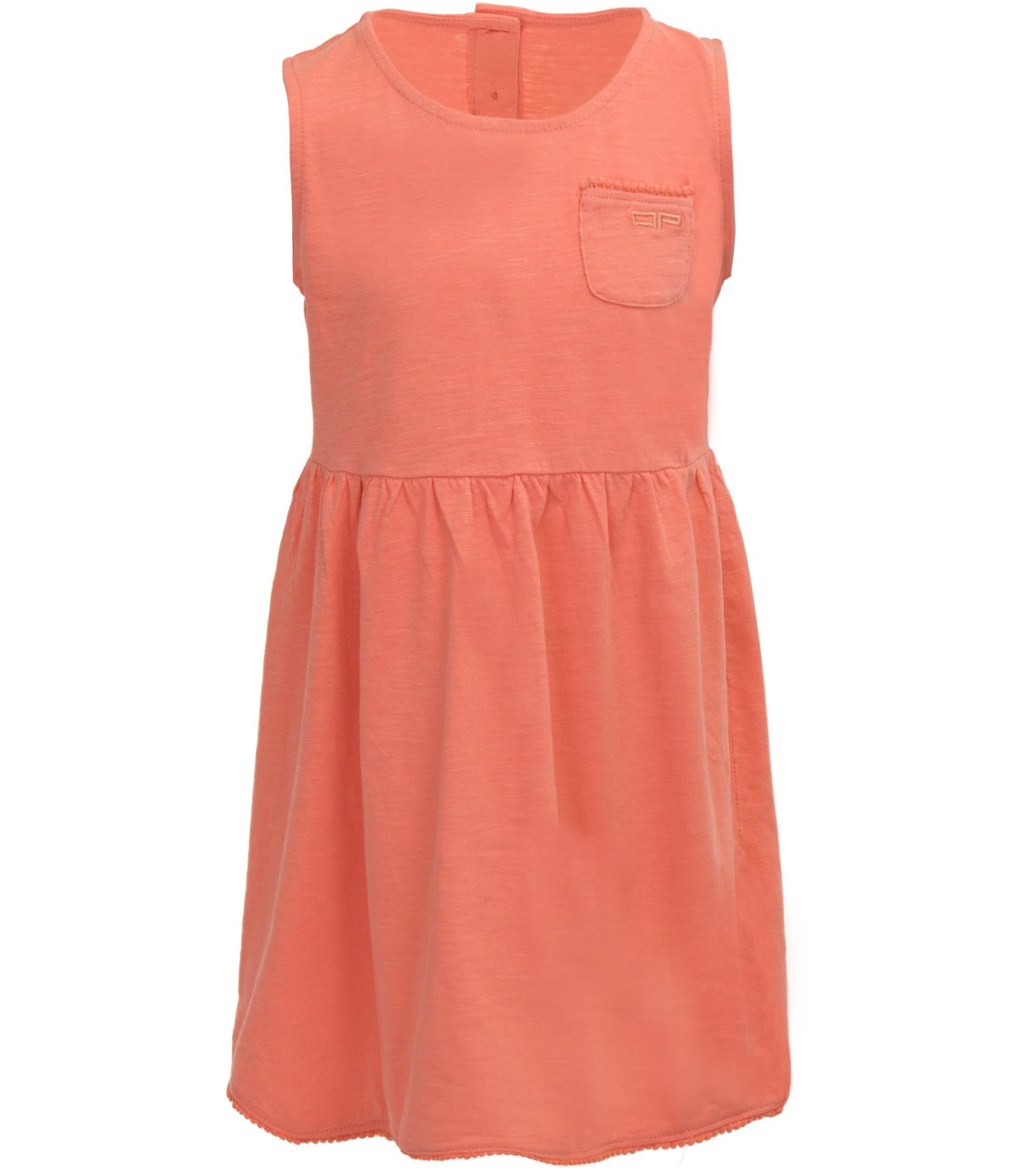Sukienka dziecięca bez rękawów. Wykonana z wygodnego materiału bawełnianego. Z przodu mała kieszonka z logo AP, z tyłu zapięcie na 3 guziki.