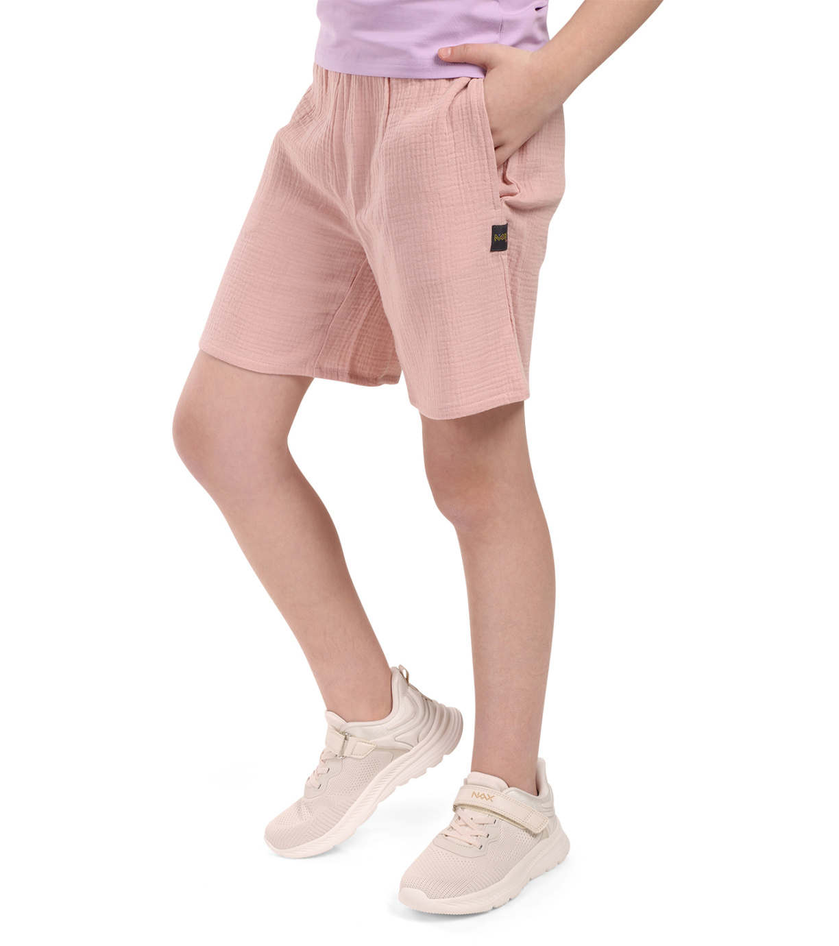 Dziecięce bawełniane spodenki NAX UOPEKMERO są wygodne, luźne i przewiewne, idealne na lato w mieście, do szkoły, nad wodę i na łonie natury. Uszyte są z przyjemnego w dotyku i dobrze odprowadzającego ciepło, strukturalnego materiału. Luźny krój i ściągacz w pasie zapewniają maksymalny komfort noszenia. Spodenki maj dwie praktyczne kieszenie i stylową naszywkę wszytą w boczny szew. Doskonały wybór dla aktywnych dzieci, zarówno na wakacjach, jak i na co dzień.