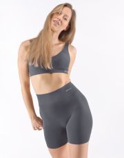 Majtki z dłuższymi nogawkami i szerokim pasem, bokserki, bielizna damska bezszwowa. Pas jest wzmocniony i wykończony bezszwowo. Nogawki są wykończone bezszwowo. W kroku wszyty jest klin. Bokserki są jednokolorowe. W zakładce tkane logo.