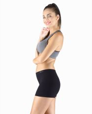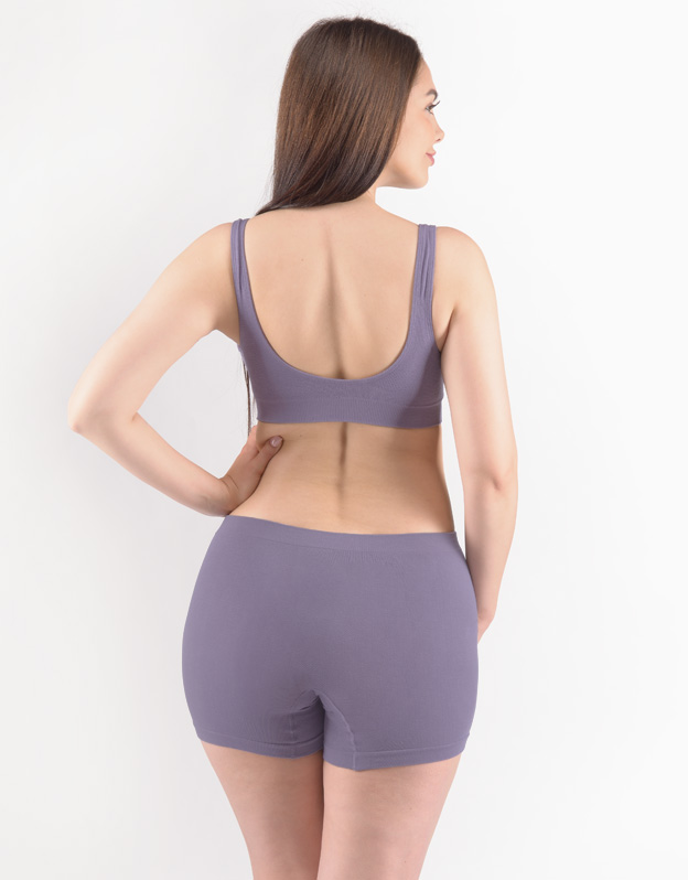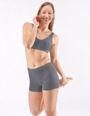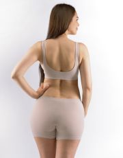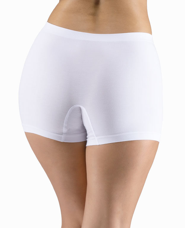 Bokserki damskie z dłuższymi nogawkami, bielizna damska bezszwowa. Pas jest wzmocniony i wykończony bezszwowo. Nogawki są wykończone bezszwowo. W kroku wszyty klin. Bokserki są jednokolorowe. Na gumce tkane logo.