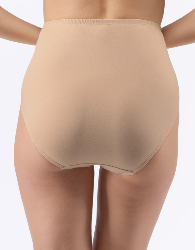 Klasycznie dopasowane figi z szerszymi bokami w większych rozmiarach, damska bielizna szyta. W pasie wszyta jest wąska gumka. W nogawkach wszyta jest wąska gumka. Majtki są jednokolorowe.