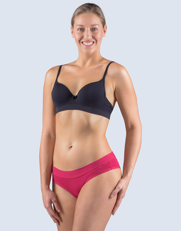 Materiał wykonano z włókna bambusowego, uzupełnionego bawełną i elastanem. Dzianina jest bardzo miękka i wygodna w noszeniu. Wprowadza luksusowy jedwabisty wygląd do codziennej bielizny. Bawełna sprawia, że materiał jest bardziej miękki i pełniejszy w dotyku.