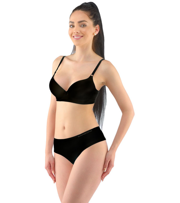 Materiał wykonany jest z włókna bambusowego, które uzupełnione jest elastanem. Dzianina jest bardzo miękka i wygodna w noszeniu. Wprowadza luksusowy jedwabisty wygląd do codziennej bielizny.