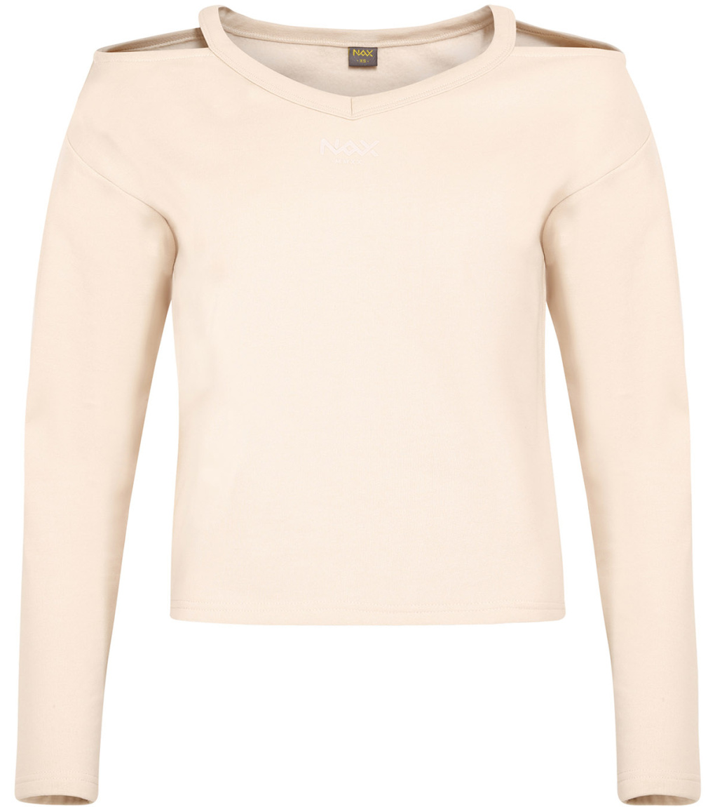 Bawełniana bluza damska GALEBA czeskiej marki NAX zachwyca kolorem i nietypowym krojem, można ją nosić w mieście lub w plenerze. Bawełniany materiał jest miękki, elastyczny, a półdopasowany krój idealnie dopasowuje się do ciała. Jednokolorowe połączenie z logo jest praktyczne.