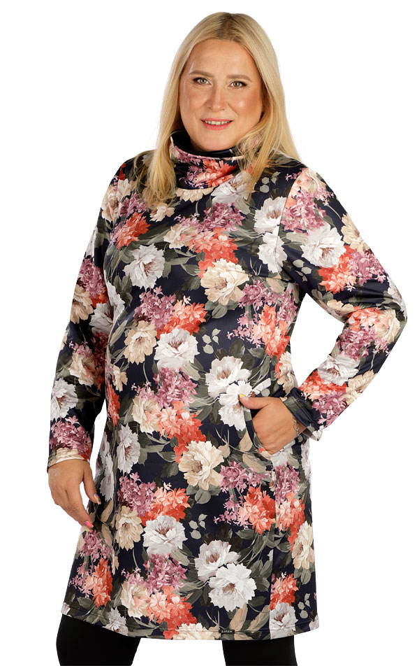 Damska sukienka dresowa – duże rozmiary. Stójka. Praktyczne kieszenie boczne. Produkty wykonane z włókien poliestrowych bardzo dobrze trzymają swój kształt, mają doskonałe właściwości termoizolacyjne, są oddychające i lekkie. Ich konserwacja jest bardzo łatwa. Elastyczny materiał w piękny kwiatowy print z przyjemną podszewką. Sukienkę oferujemy w większych rozmiarach. Długość sukni ok. 100 cm.