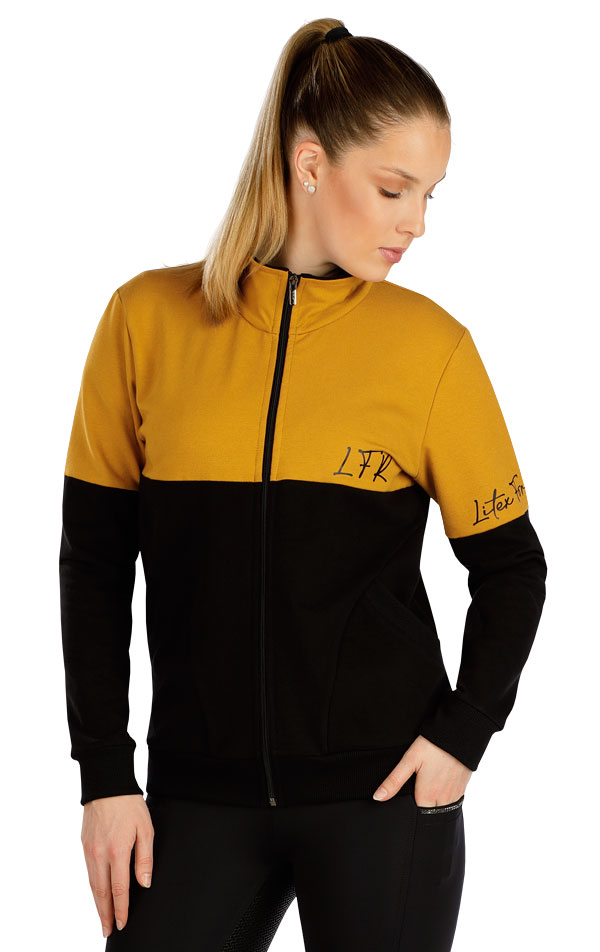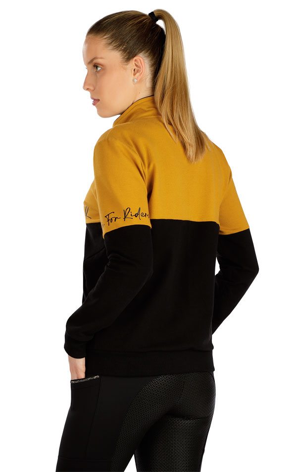 Damska bluza zapinana na zamek. Luźny, strukturyzowany krój w połączeniu kolorystycznym z nadrukiem z przodu i na rękawie. Z przodu wszyte kieszenie. Długość rękawów i bluzy wykonana jest z elastycznego ściągacza u dołu. Bawełniana elastyczna dzianina z miękkim włosiem wewnętrznym jest bardzo przyjemna w noszeniu.