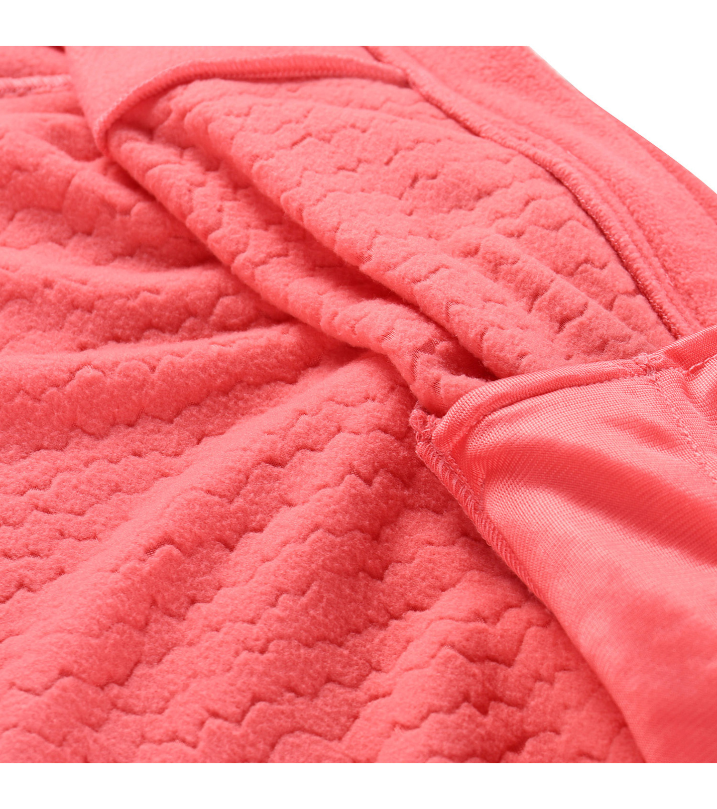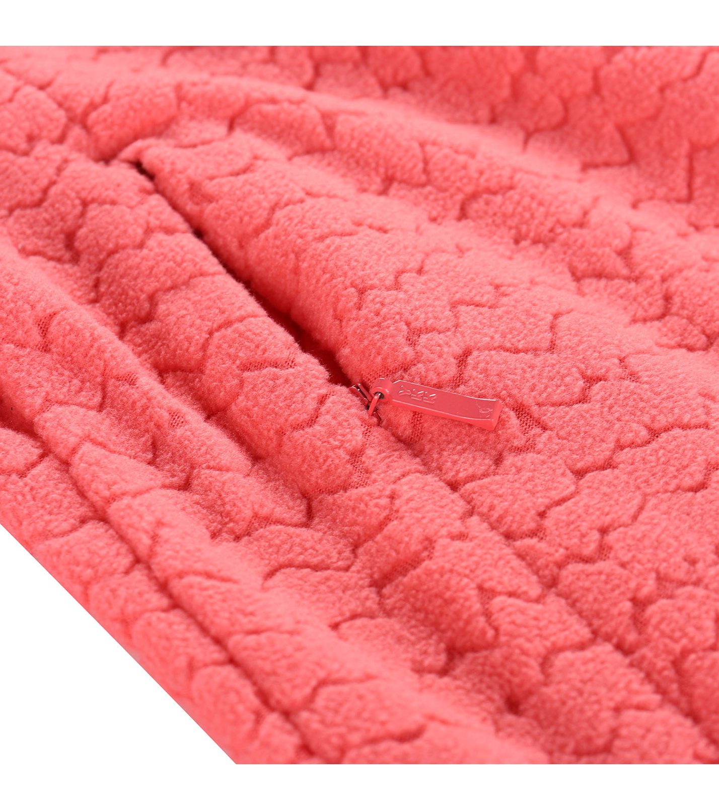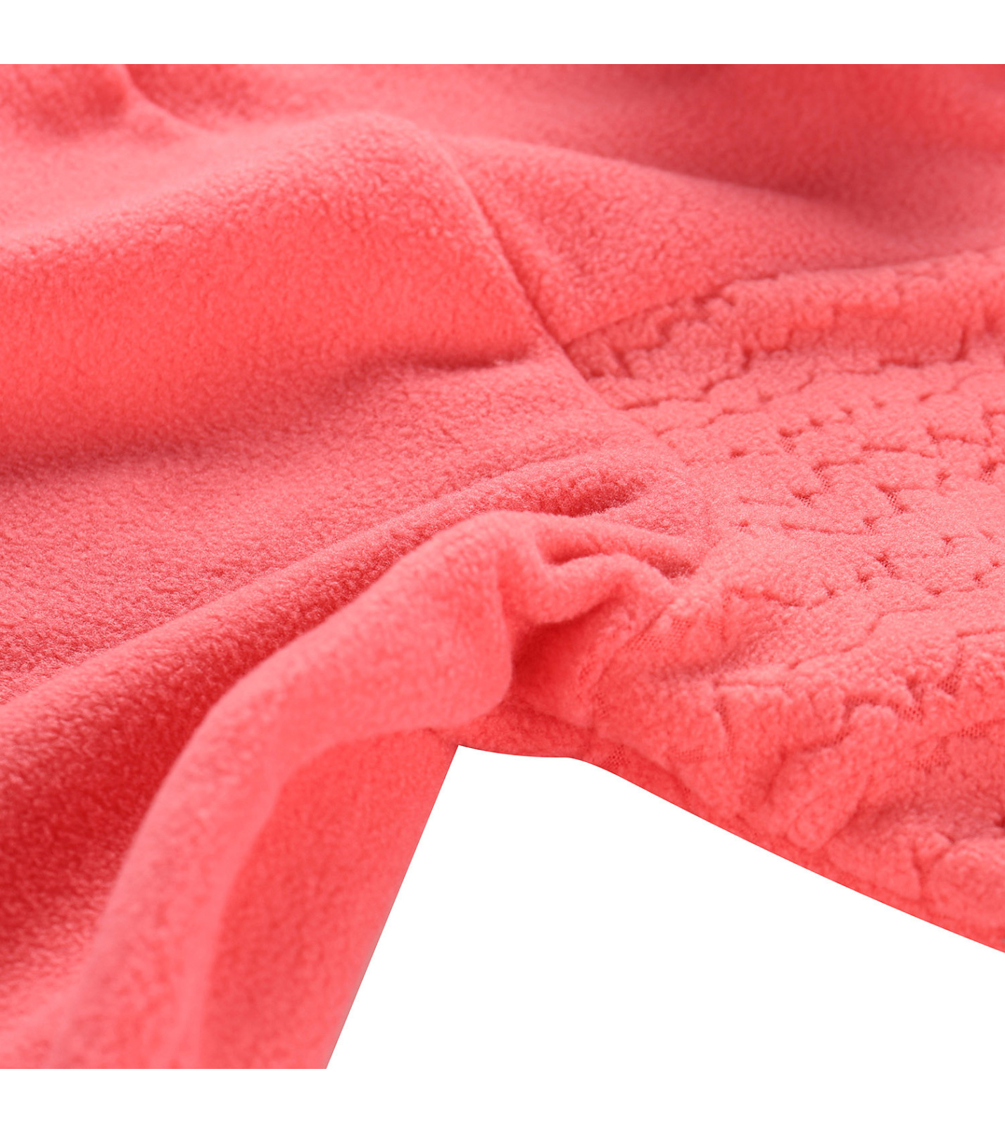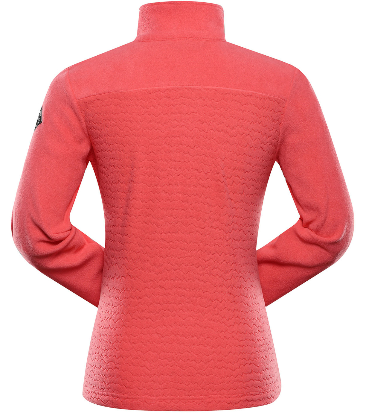 Damska bluza polarowa wykonana jest w 100% z poliestru o strukturze mikropolaru, który jest ciepły, paroprzepuszczalny i elastyczny, dzięki czemu zapewnia wysoki komfort noszenia. Tłoczony materiał nadaje bluzie nowoczesny wygląd i podnosi jej atrakcyjność. Pół-dopasowany krój podkreśla sylwetkę i nie krępuje ruchów. Praktyczny, wysoki kołnierz z osłoną podbródka chroni przed zimnem, a rękawy wykończone gumką dobrze trzymają się kształtu i zapobiegają utracie ciepła.