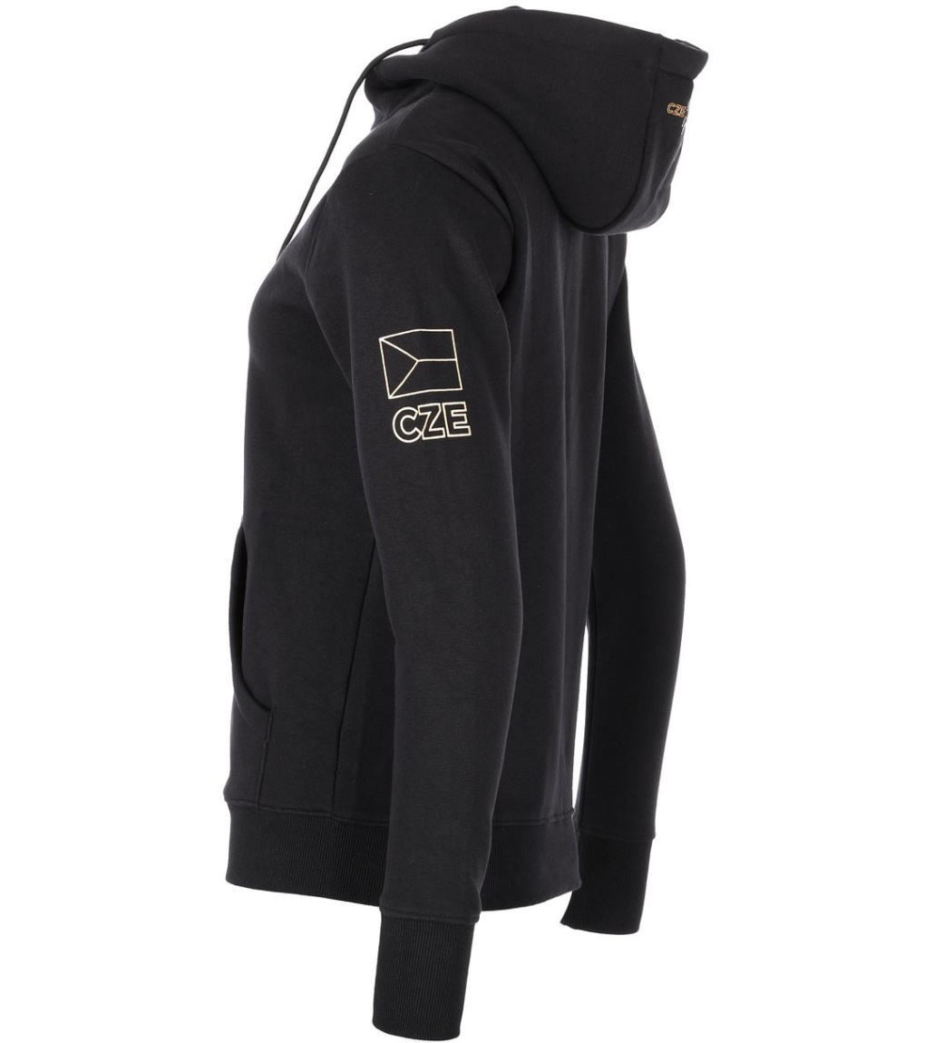Damska bawełniana bluza z kapturem COURIRA należy do limitowanej kolekcji olimpijskiej, przygotowanej specjalnie na Letnie Igrzyska Olimpijskie 2024 w Paryżu. Damska bluza z kapturem z kieszenią typu kangur, długim zamkiem błyskawicznym oraz podszewką w rękawach i dolnej części sprawdzi się podczas wszelkiego rodzaju aktywności na świeżym powietrzu i w pomieszczeniach, uprawiania sportu oraz na co dzień. Sportowa bluza damska wykonana jest z miękkiej bawełny, która jest bardzo miękka, elastyczna i wygodna w noszeniu. Praktyczny czarny kolor, symbol olimpijski i czeska flaga na piersi tworzą elegancki i niepowtarzalny design produktu. Nie kupisz tego wyjątkowego produktu z limitowanej kolekcji olimpijskiej codziennie, więc nie wahaj się!