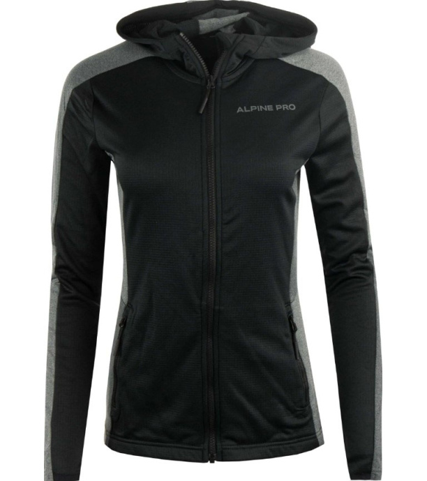 Damska bluza ALPINE PRO SELEDA w kolorze czarnym to idealny wybór dla aktywnych kobiet, które szukają wygody i stylu w jednym. Wykonana z szybkoschnącego, wygodnego materiału, ta bluza nadaje się do noszenia na co dzień, a także do uprawiania sportów, takich jak spacery na łonie natury, wędrówki lub noszenie na co dzień w mieście. Bluza ma długi zamek błyskawiczny oraz półdopasowany krój, który zapewnia wygodę i swobodę ruchów. Praktyczne detale obejmują dwie kieszenie zapinane na zamek na drobne przedmioty, anatomicznie ukształtowane rękawy i stały kaptur. Stylowy nadruk i logo ALPINE PRO nadają bluzie nowoczesny i atrakcyjny wygląd.