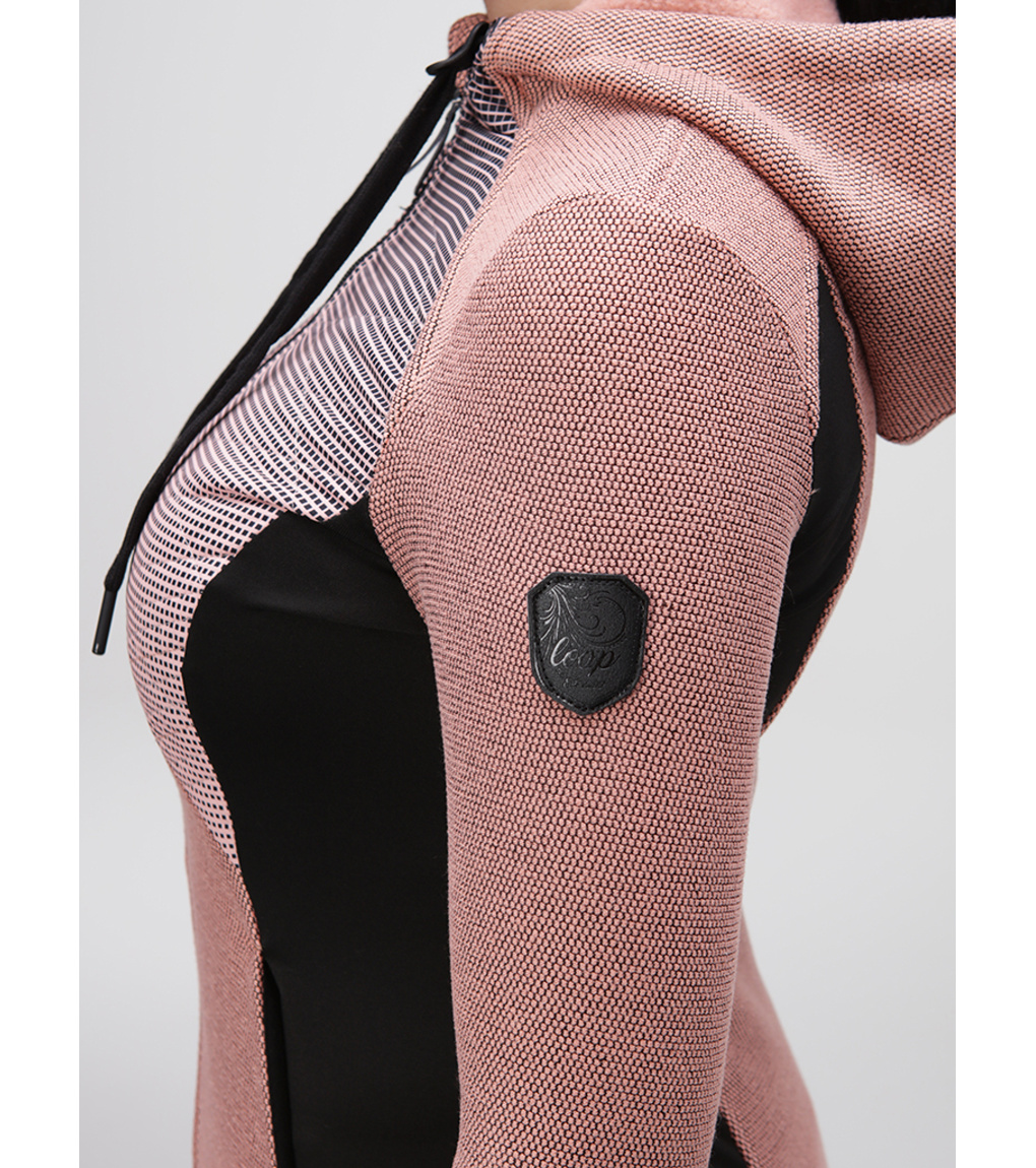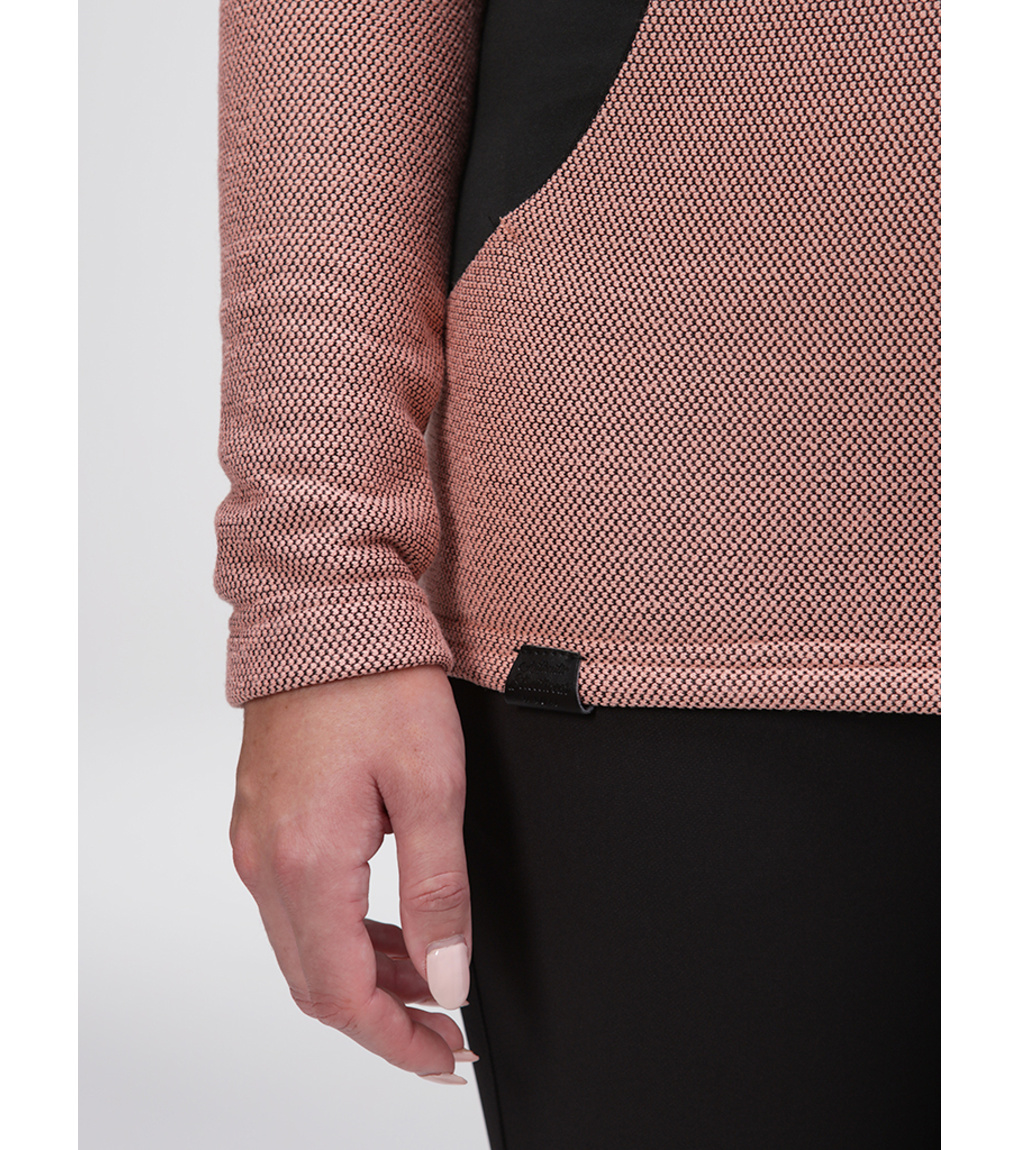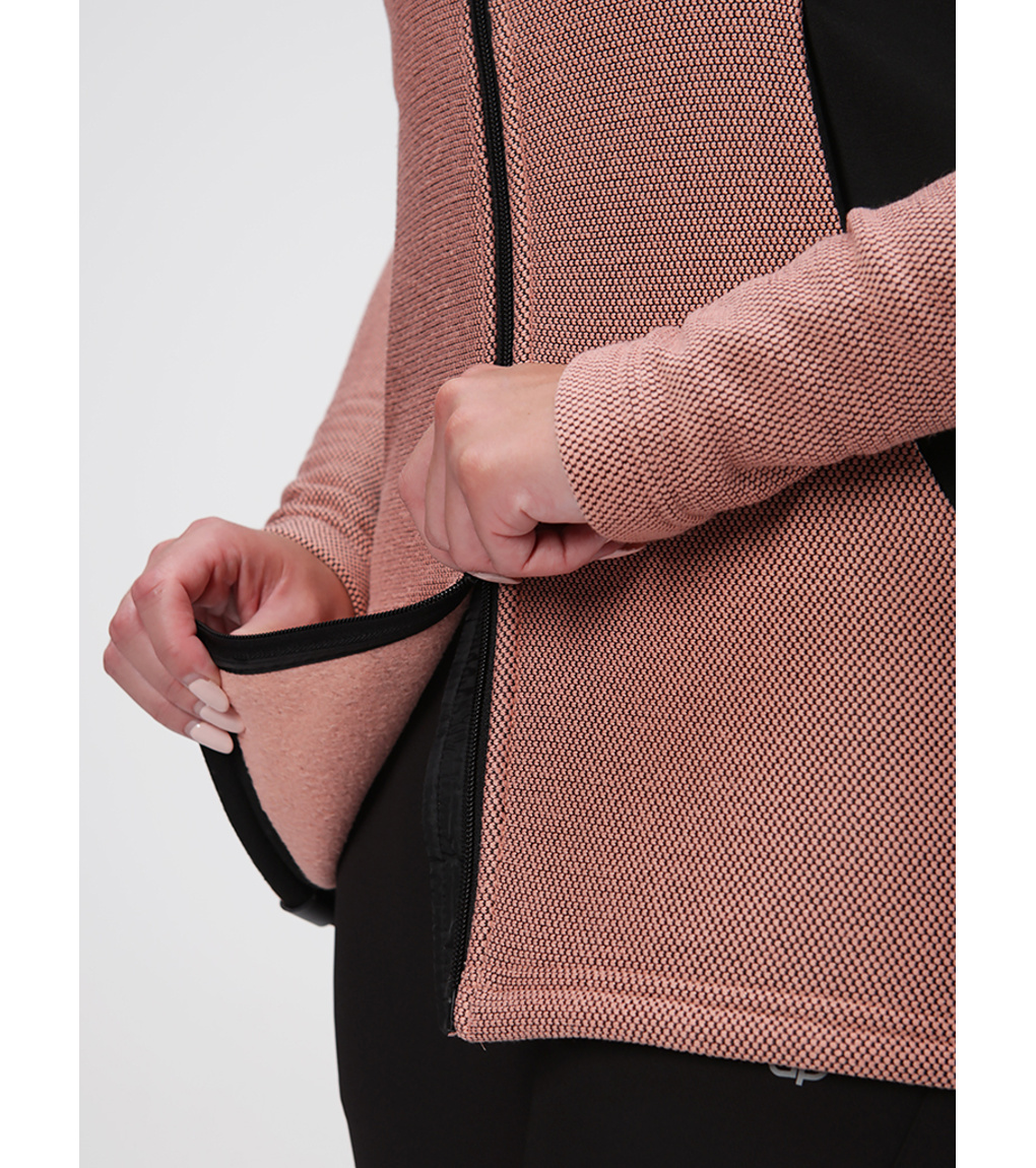 W damskim swetrze sportowym Loap GALIPA zakochasz się już od pierwszego założenia. Niezależnie od tego, czy zastosujesz go jako drugą funkcjonalną warstwę odzieży, czy też samodzielnie, zawsze sprawdzi się świetnie. Sweter wykonany jest z dwustronnie czesanej dzianiny ULTRAWARM, która rozgrzewa i utrzymuje ciepło, a w przedniej części klatki piersiowej dodatkowo uzupełniony ociepleniem z włókien POLYTHERM. Właściwości użytkowe swetra wspiera także wzmacniająca technologia STORMEX, która zapewnia ochronę przed deszczem i silnym wiatrem. Podszewka z tafty zapewnia wygodne dopasowanie, a dzięki elastycznym panelom bocznym sweter dobrze się układa, nie krępując w żaden sposób ruchów. Sweter ma klasyczny krój o lekko przedłużonej długości, ma zintegrowany kaptur regulowany sznurkiem oraz praktyczne zapięcie na spiralny zamek błyskawiczny z metalicznym efektem. Dodatkowo wyposażony jest w osłonę podbródka. Zarówno dolny brzeg, jak i rękawy nie mają ściągacza. Dopracowany sportowy wygląd uzupełniają dwie kieszenie zapinane na zamek.