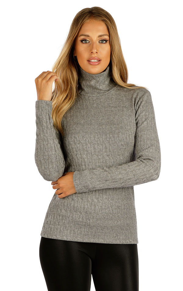 Golf damski z długim rękawem. Dopasowany krój. Dzianina o splocie warkoczowym z domieszką wiskozy i elastanu jest bardzo przyjemna dla ciała, bardzo elastyczna i nie gniecie się.