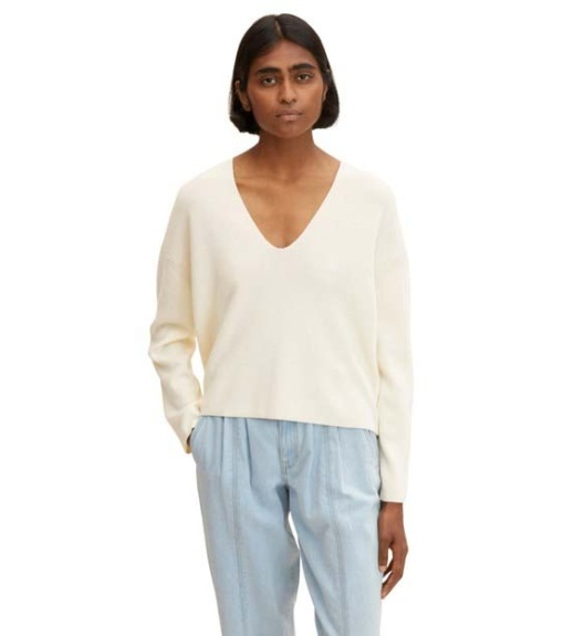 Sweter damski, prążkowany, z dekoltem w serek, w jednolitych kolorach. Wykonane z miękkiej mieszanki wiskozy i poliestru, zapewniającej wygodę noszenia. Klasyczny krój.