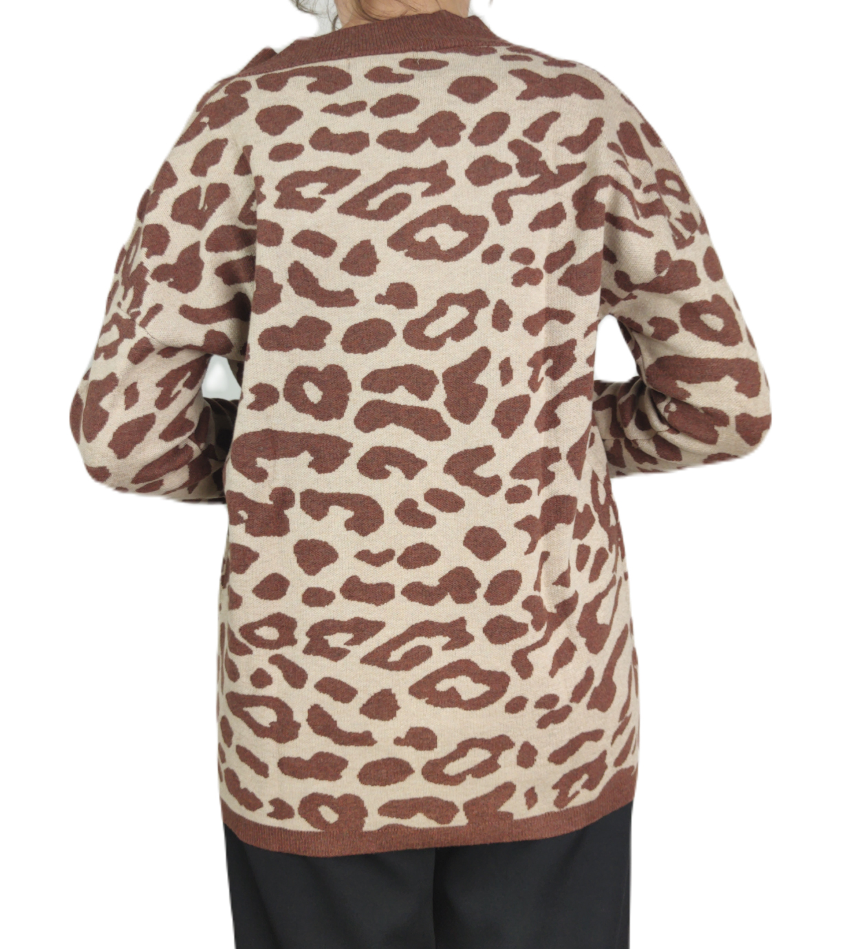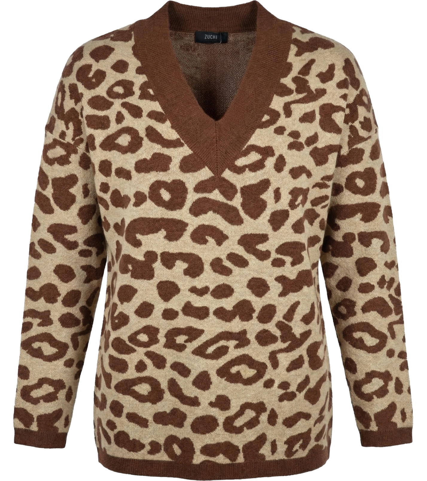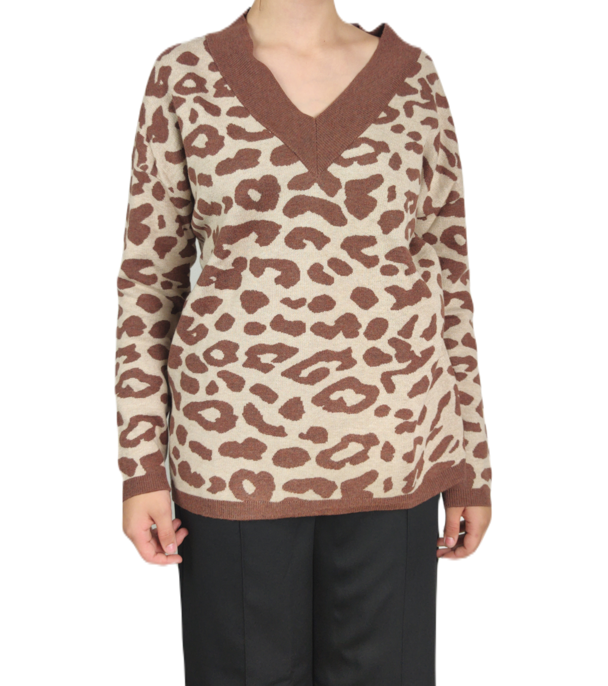 Damski sweter zakładany przez głowę wykonany z przyjemnej dzianiny. Dekolt w kształcie litery V.