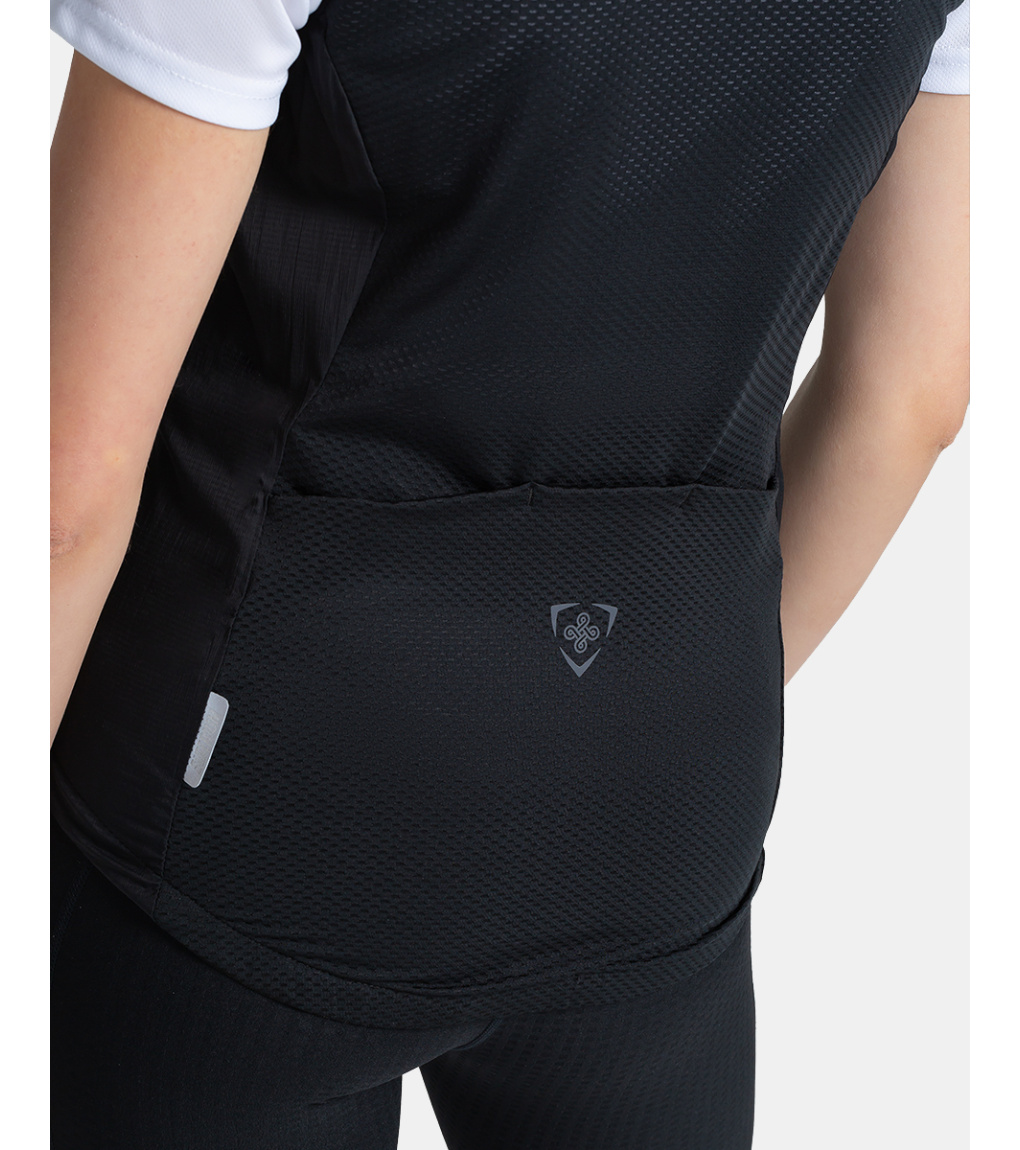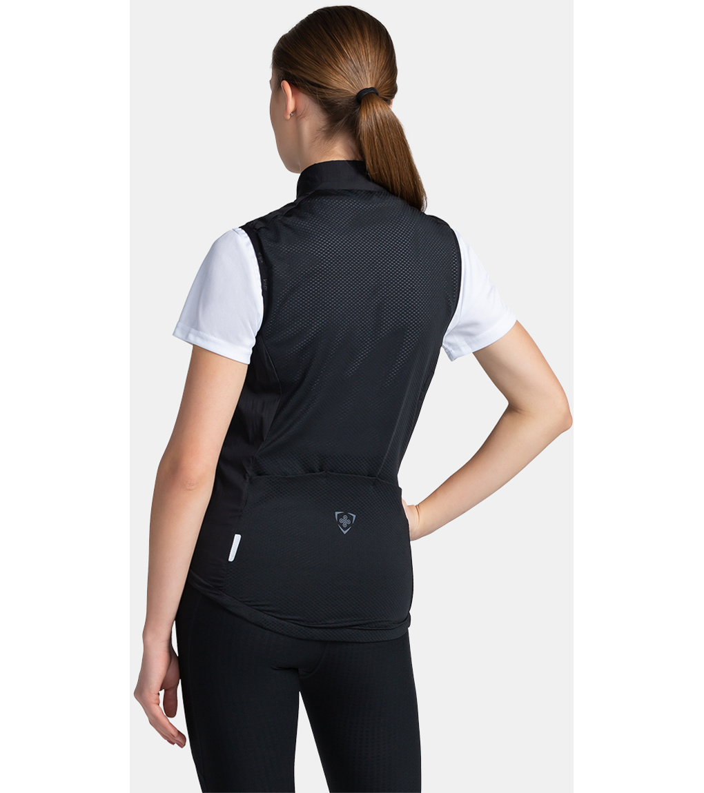 Kilpi FLOW-W to ultralekka damska kamizelka odpowiednia do jazdy na rowerze, biegania lub aktywności na świeżym powietrzu. Materiał SIBERIUM DWR WB z lekką warstwą hydrofobową służy jako ochrona przed wiatrem i zimnem. Siateczkowy materiał na plecach poprawia mikrowentylację. Waga kamizelki w rozmiarze 36 to tylko 80g i można ją zapakować do bocznej kieszeni. Wyraźne elementy odblaskowe z przodu i z tyłu poprawiają widoczność w ciemności. Z tyłu znajdują się dwa praktyczne otwory ułatwiające dostęp do kieszeni koszulki kolarskiej.