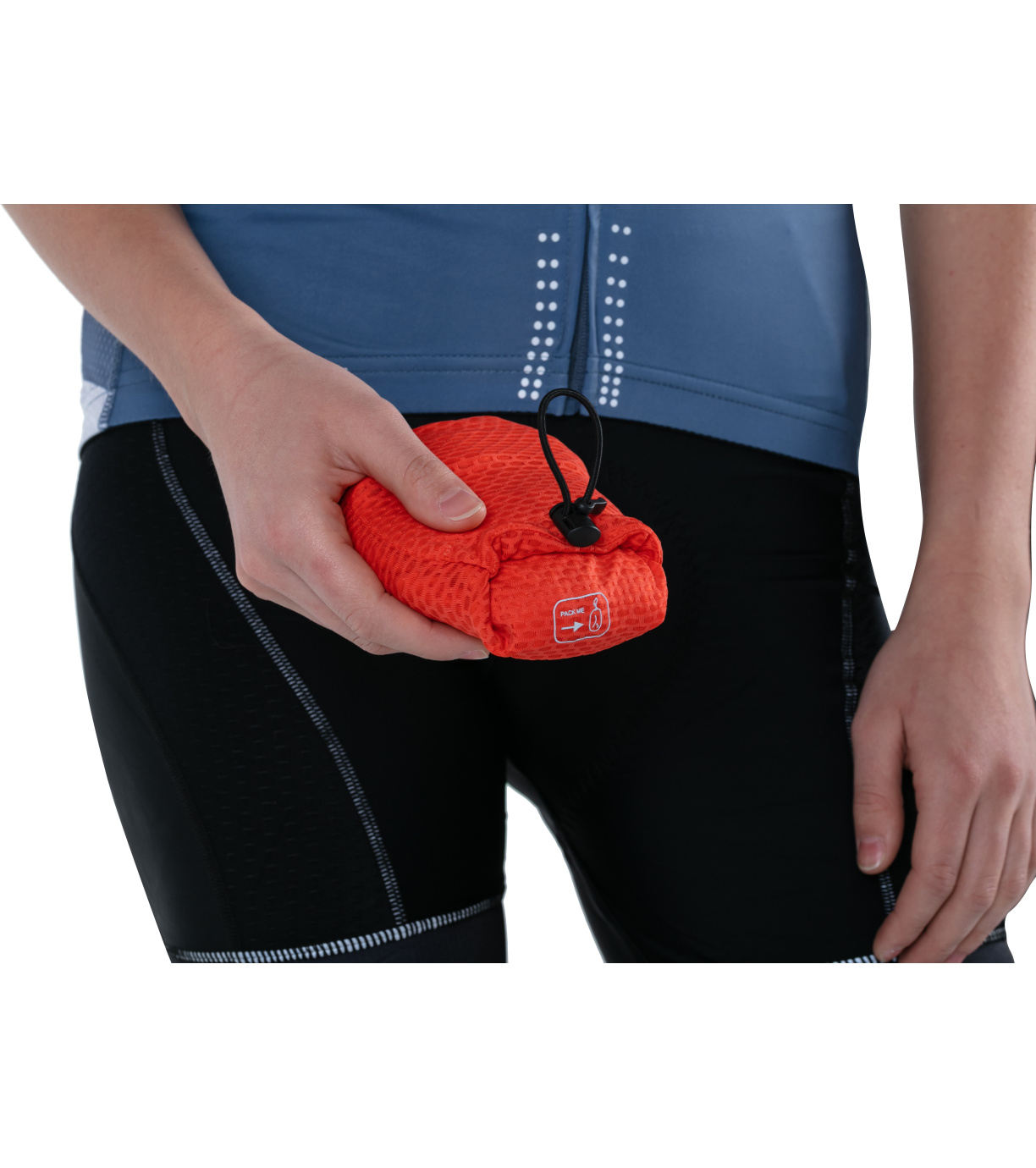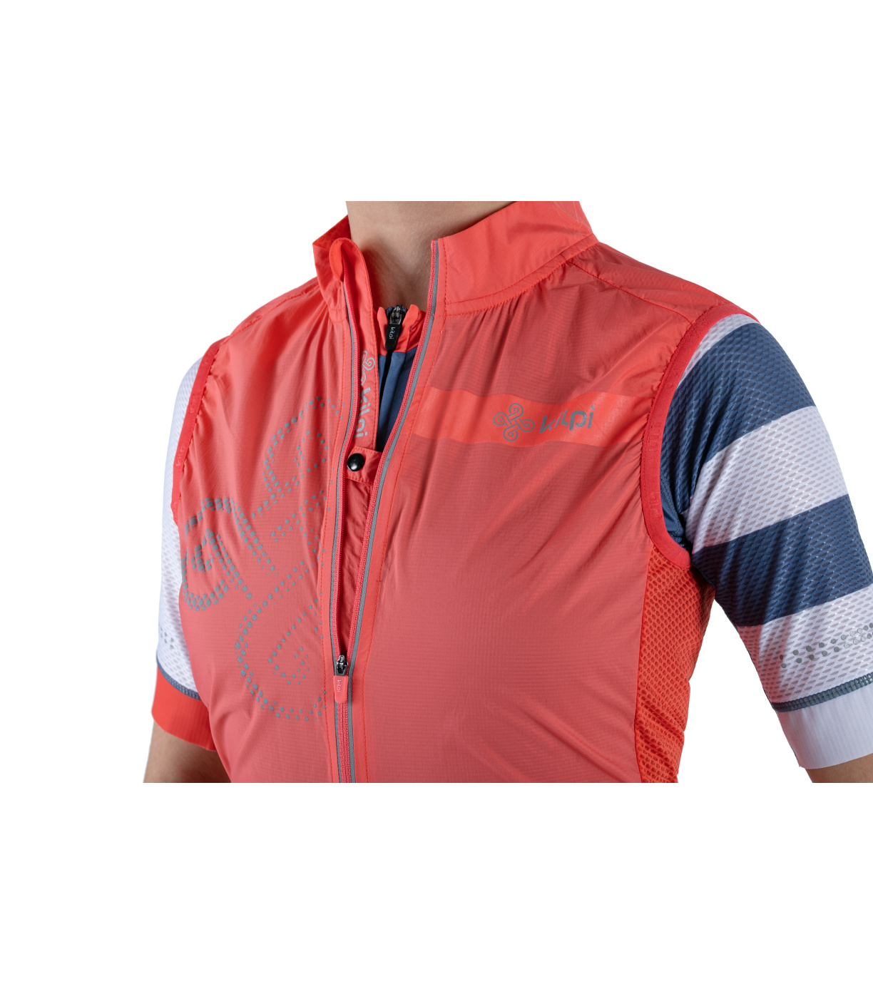 Kilpi FLOW-W to ultralekka damska kamizelka do biegania, odpowiednia również do jazdy na rowerze lub aktywności na świeżym powietrzu. Materiał SIBERIUM DWR WB służy jako ochrona przed wiatrem i zimnem. Siateczkowy materiał na plecach poprawia mikrowentylację. Waga kamizelki w rozmiarze 36 to tylko 80g. Kamizelkę można spakować do tylnej kieszeni. Wyraziste elementy odblaskowe z przodu i z tyłu poprawiają widoczność w ciemności.