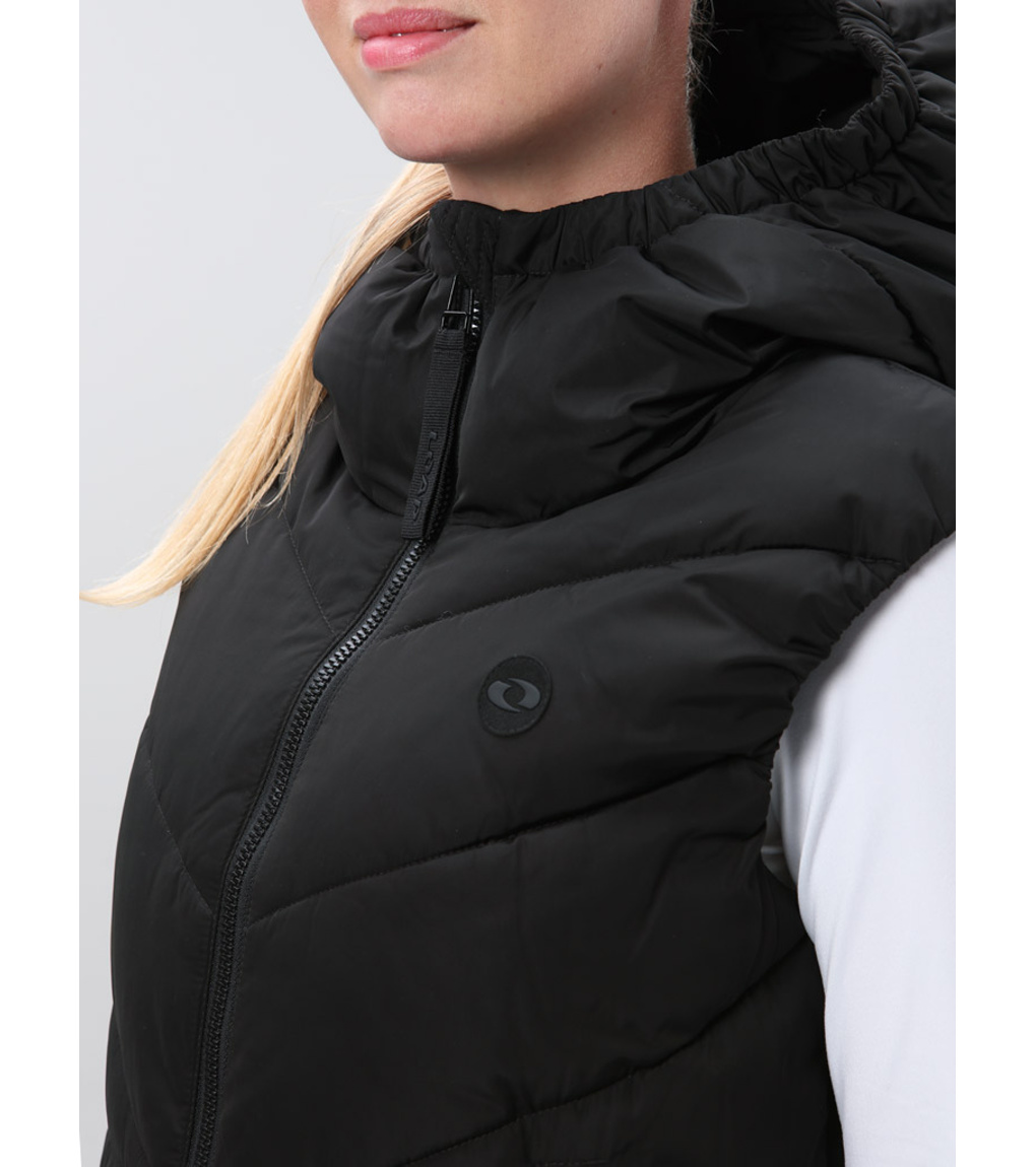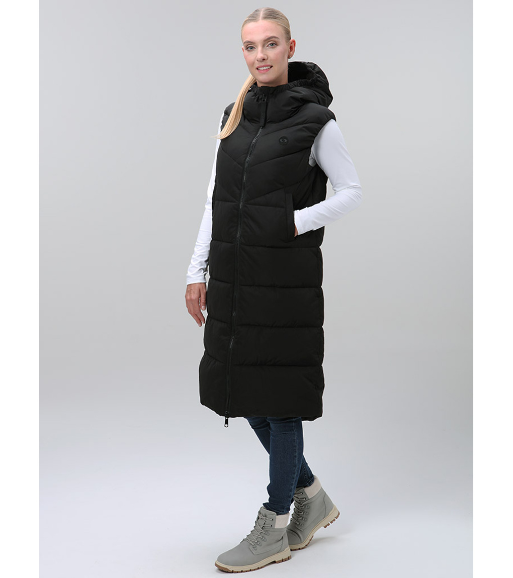 Długa damska kamizelka Loap to idealny wybór na chłodniejsze dni, gdy nie potrzebujesz jeszcze kurtki, ale zależy Ci na cieple i komforcie. Ocieplina z włókien Polytherm zapewni przyjemny komfort termiczny. Wodoodporna powłoka DryTech chroni przed lekkim deszczem lub śniegiem, dzięki czemu nie zaskoczy Cię niesprzyjająca pogoda. Długi krój kamizelki idealnie ogrzeje biodra i uda, co docenisz szczególnie podczas jesiennych i wiosennych spacerów. Zintegrowany kaptur z możliwością regulacji zapewni dodatkową ochronę przed wiatrem i zimnem. Długi, dwukierunkowy zamek błyskawiczny ułatwia zapinanie i zapewnia swobodę ruchów, na przykład podczas siedzenia lub jazdy samochodem. Dzięki klasycznemu krojowi kamizelka dopasowuje się do większości sylwetek i nadaje się do noszenia z bluzą lub swetrem. Dwie zewnętrzne kieszenie pomieszczą dłonie i drobiazgi, które musisz mieć pod ręką. Dół bez ściągacza nadaje kamizelce schludny, elegancki wygląd. Stylowa i praktyczna zarazem, kamizelka ta jest świetnym dodatkiem na okres przejściowy - niezależnie od tego, czy wybierasz się do miasta, na wycieczkę, czy po prostu na spacer ze swoim psem.