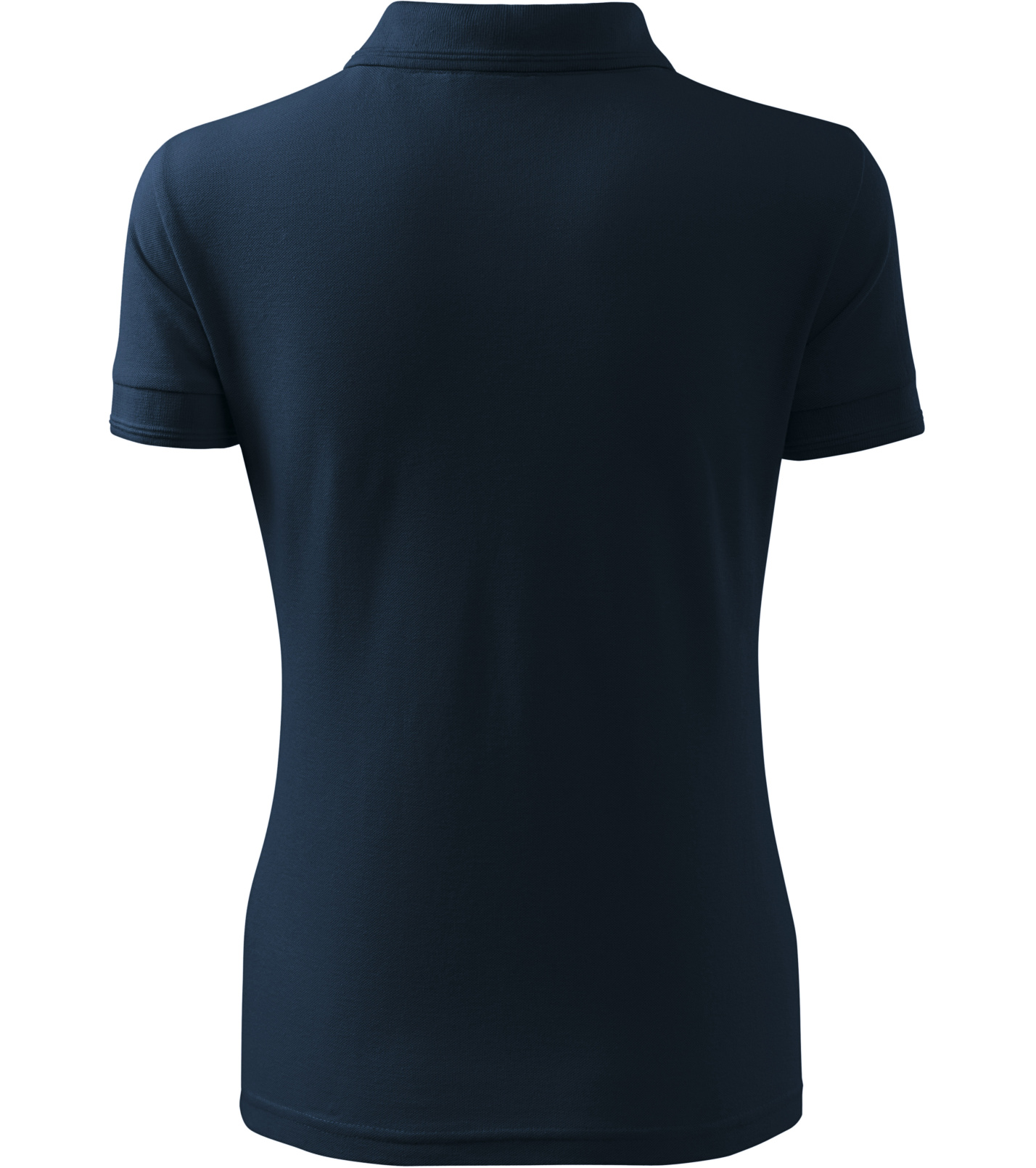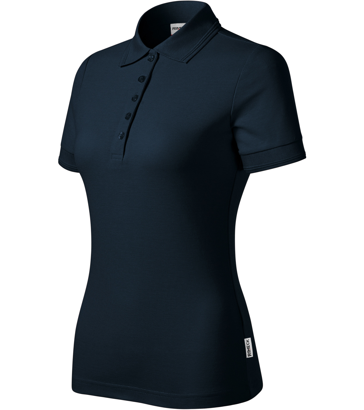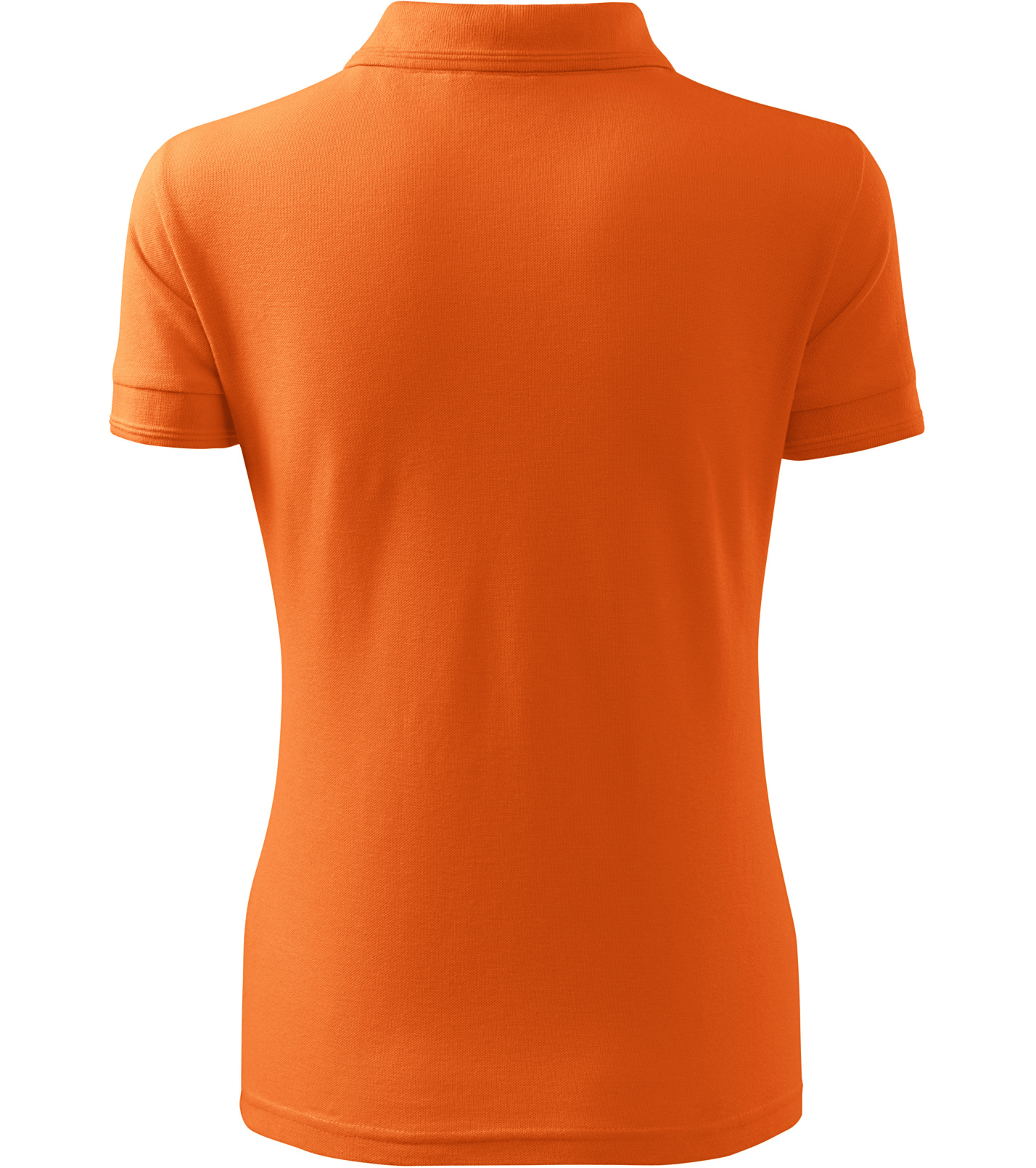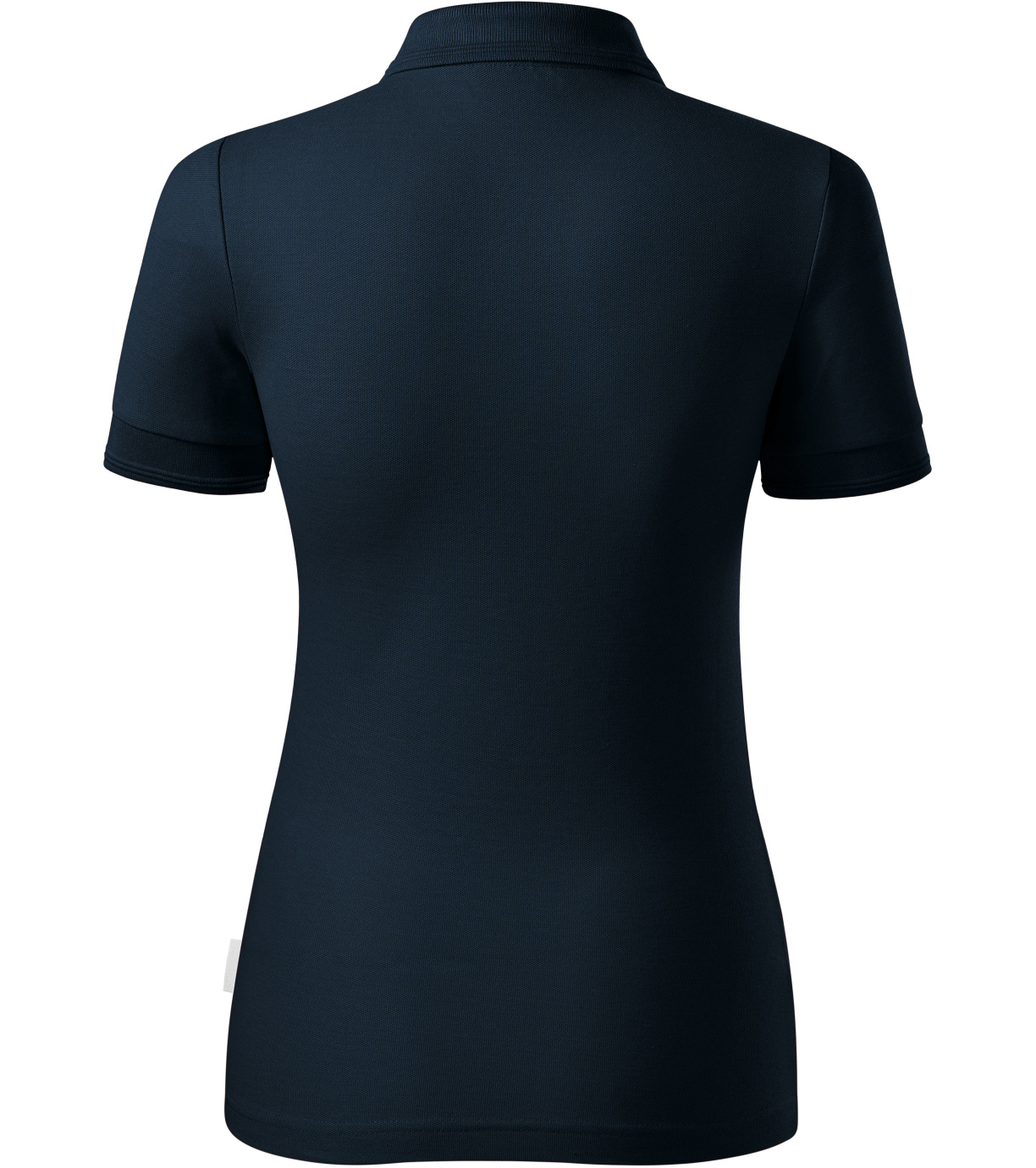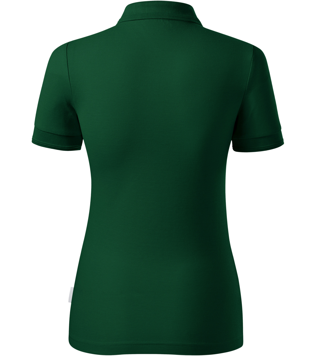 Damska koszulka polo z krótkim rękawem, wykonana jest z wytrzymałego materiału, idealnego do pracy. Posiada lekko dopasowany krój ze szwami bocznymi, kołnierzyk i lamówki rękawów z podwójnie tłoczonym paskiem dzianiny ściągaczowej 1:1 oraz wąską zakładkę zapinaną na 5 guzików w kolorze materiału. Wewnętrzny pasek na karku wykończony taśmą z materiału wierzchniego, a szwy na ramionach wzmocnione taśmą.