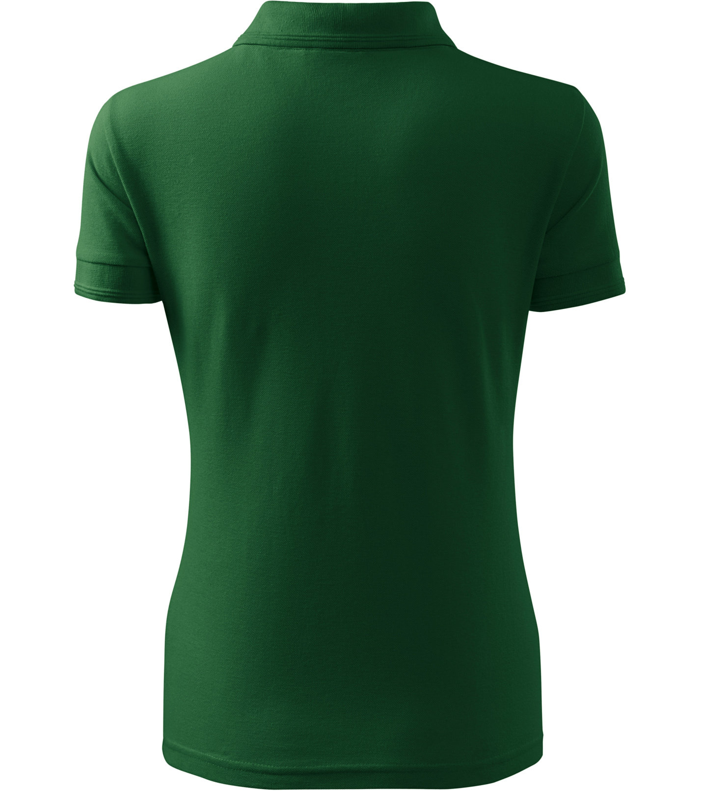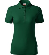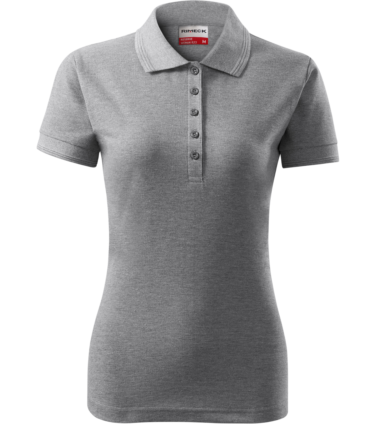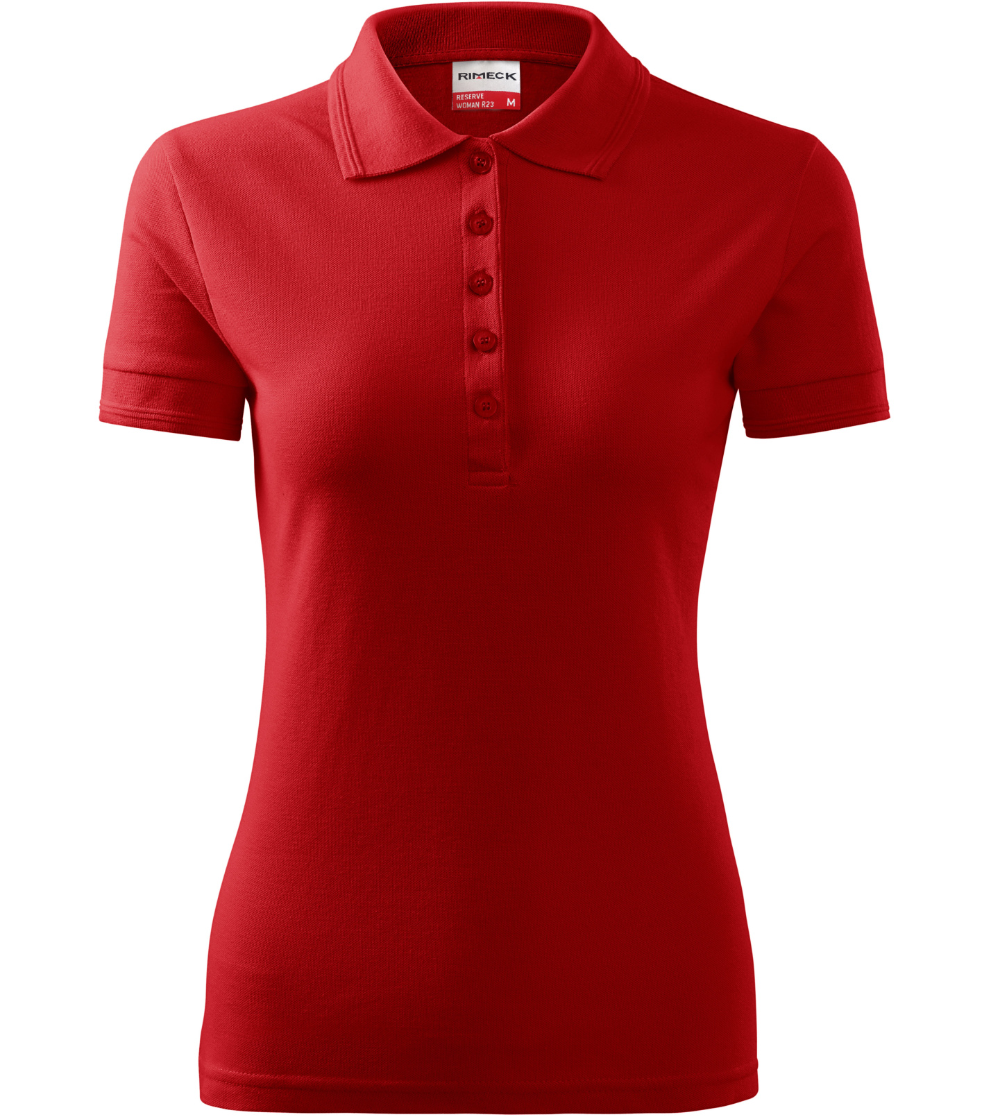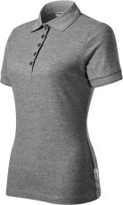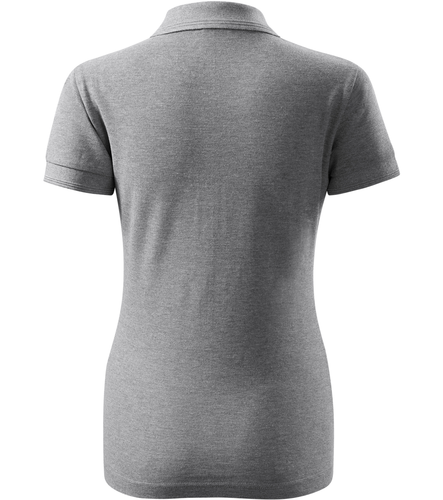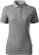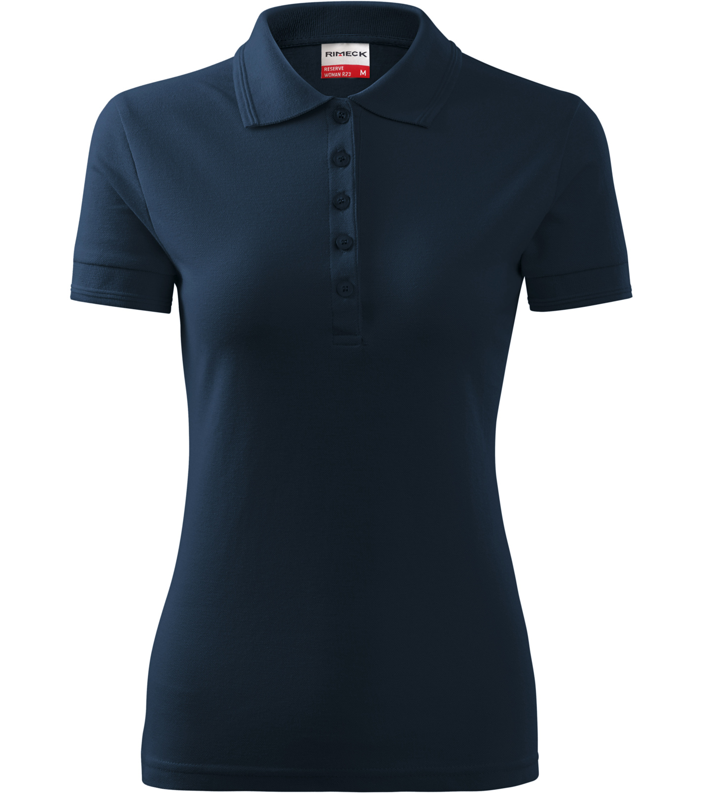 Damska koszulka polo z krótkim rękawem, wykonana jest z wytrzymałego materiału, idealnego do pracy. Posiada lekko dopasowany krój ze szwami bocznymi, kołnierzyk i lamówki rękawów z podwójnie tłoczonym paskiem dzianiny ściągaczowej 1:1 oraz wąską zakładkę zapinaną na 5 guzików w kolorze materiału. Wewnętrzny pasek na karku wykończony taśmą z materiału wierzchniego, a szwy na ramionach wzmocnione taśmą.